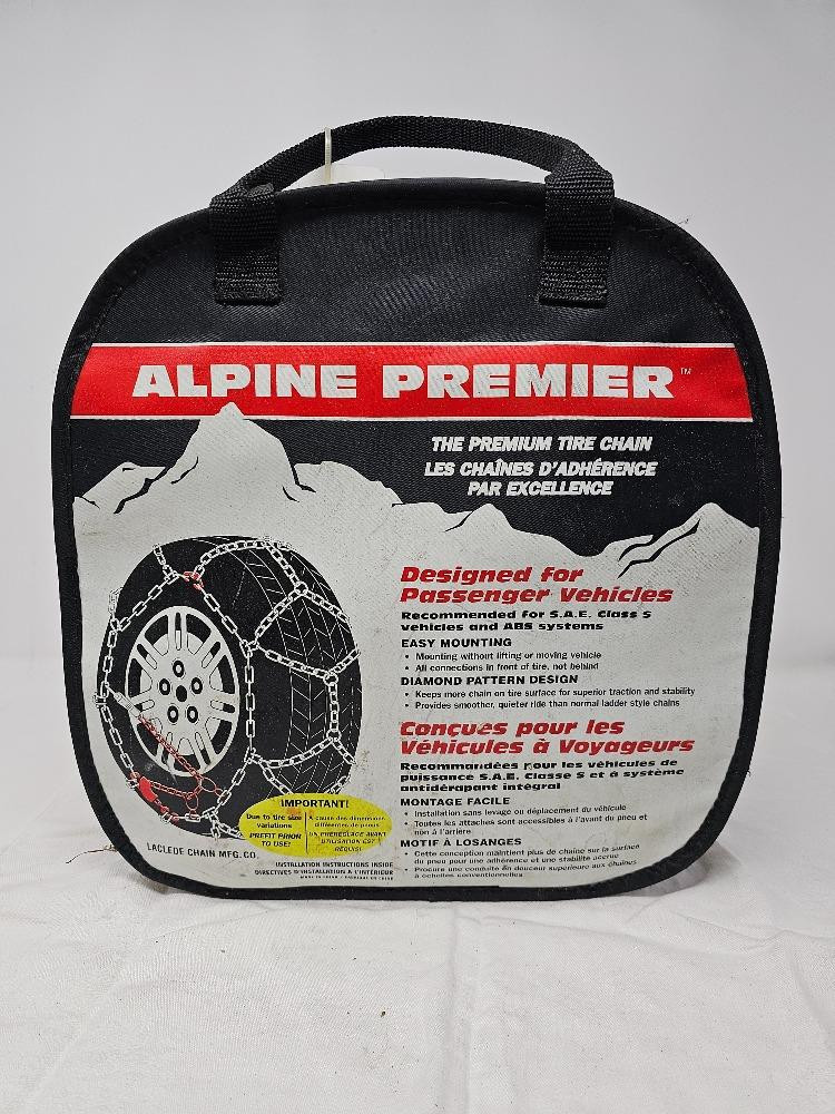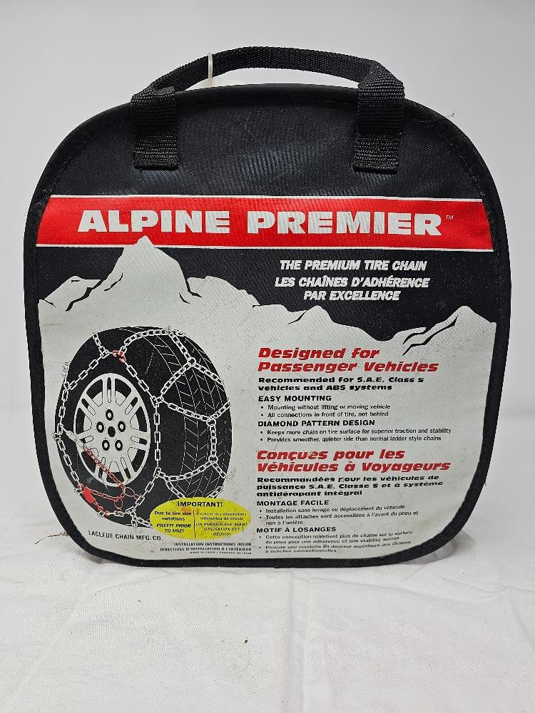 Brand New Set Of Passenger Vehicle Tire Chains Made by Alpine Premier New in package - never used! See pic for tire sizes these chains fit
