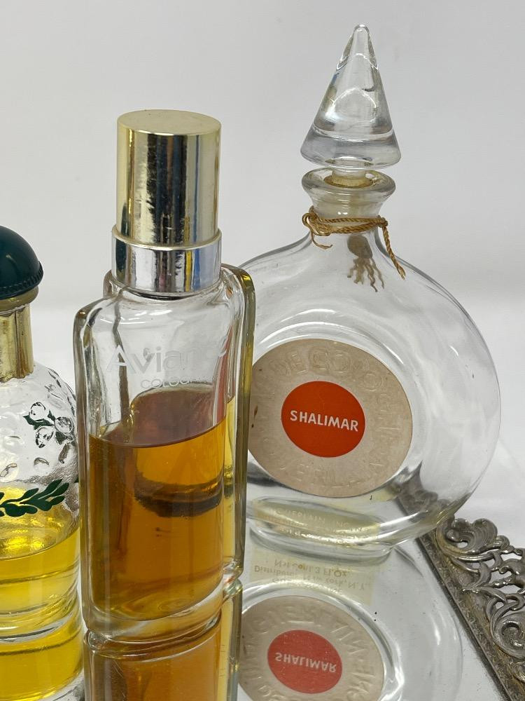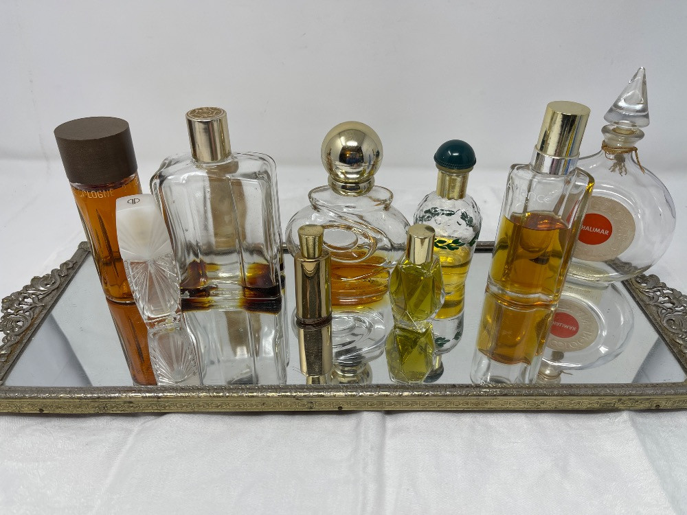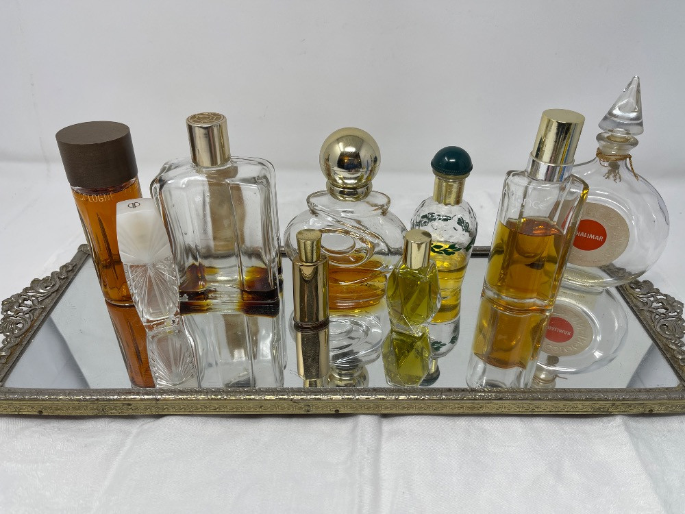 Lot # 55 - Vintage Mirror Vanity Tray With 9 Perfume Bottles