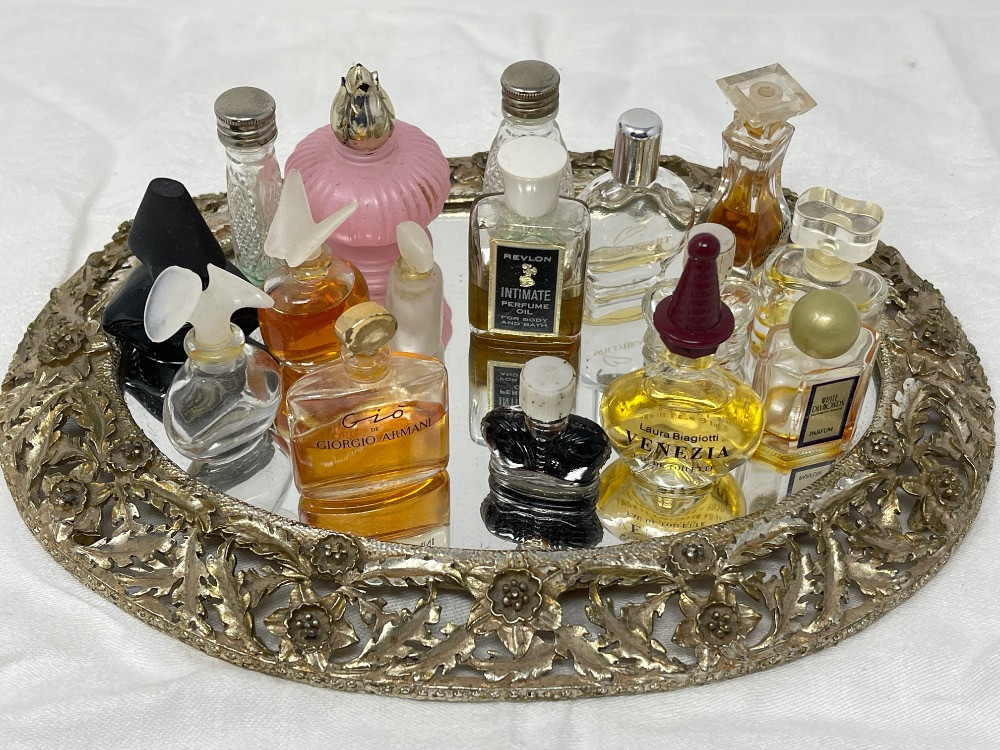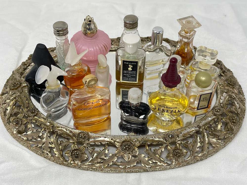 Lot # 57 - (16) Mini Perfumes on Mirror Vanity Tray