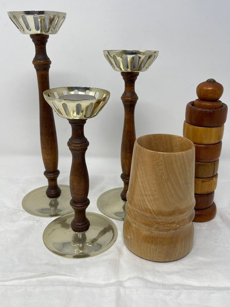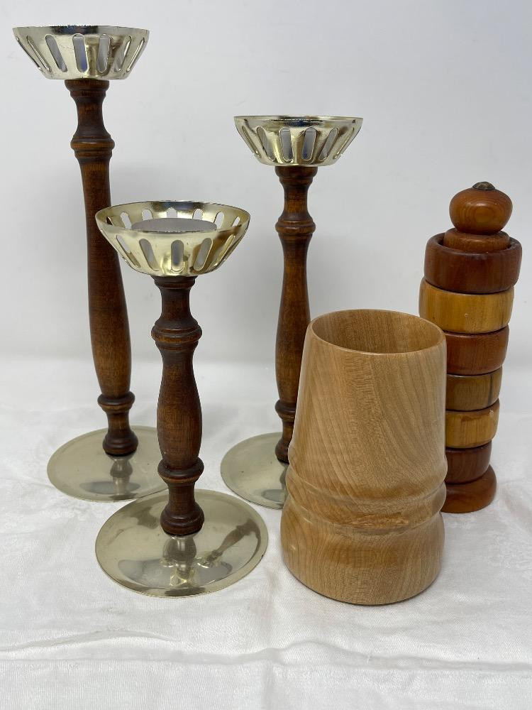 Lot # 60 - Wood Cup - Candle Sticks - Napkin Rings/Stand