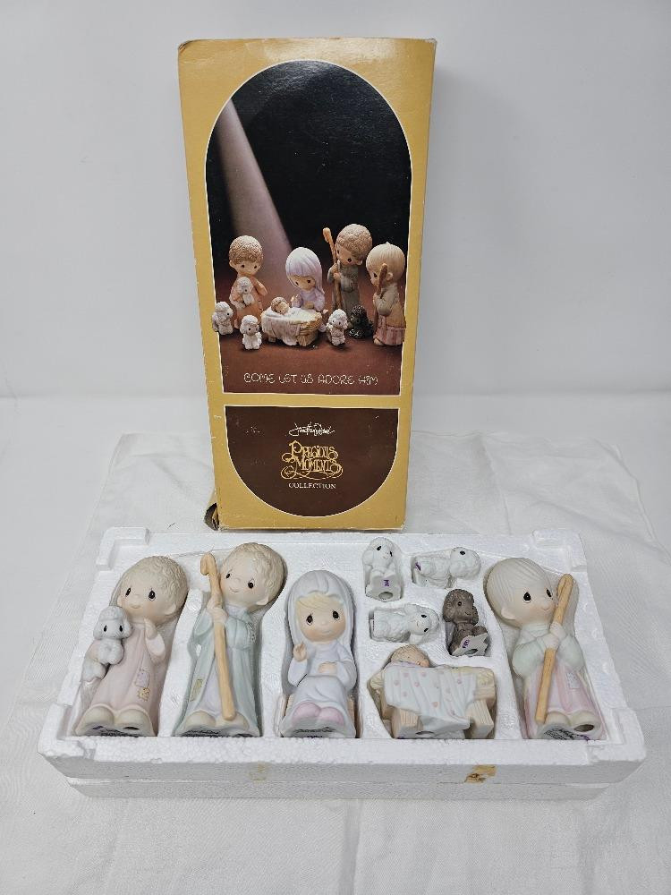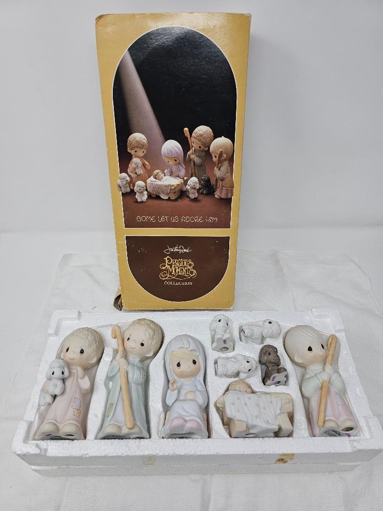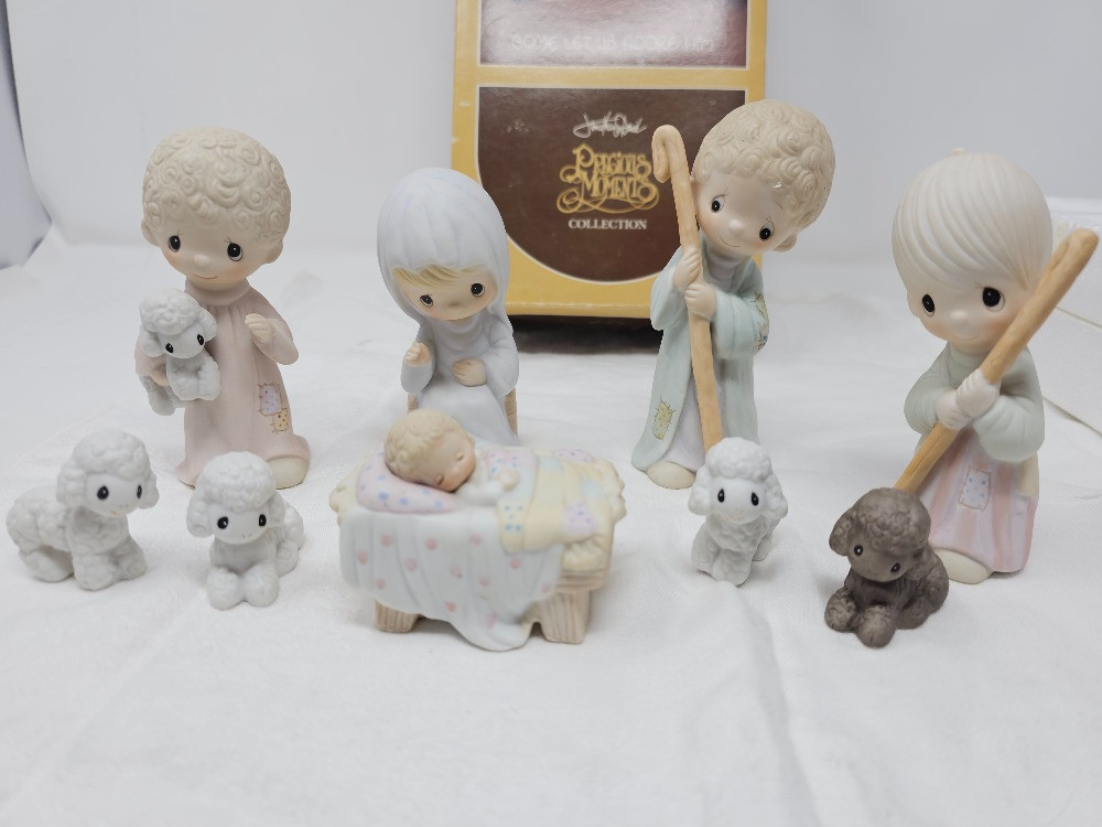 1980 Precious Moments 9-Piece Nativity Scene Come Let Us Adore Him In original box & packaging In great condition!