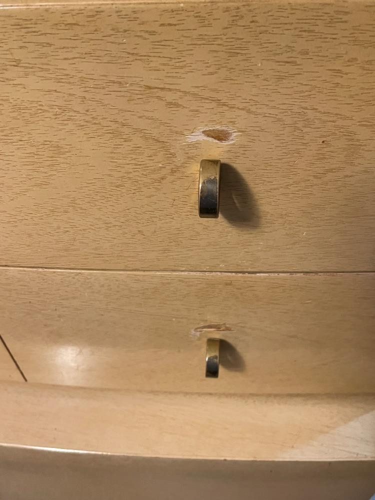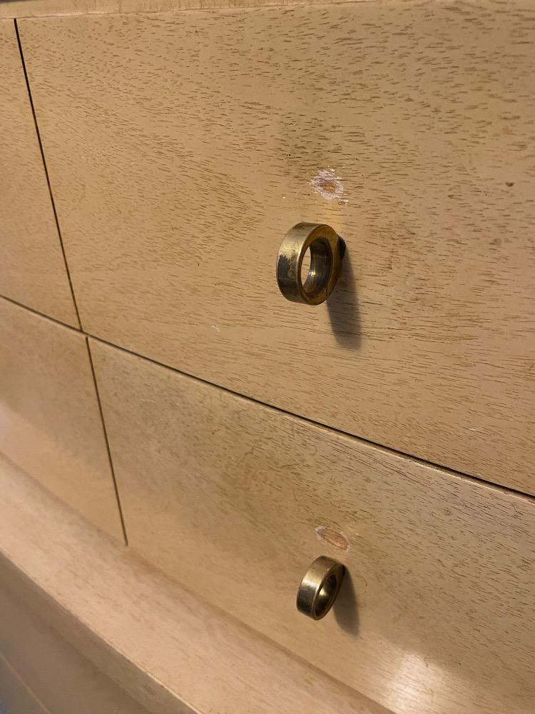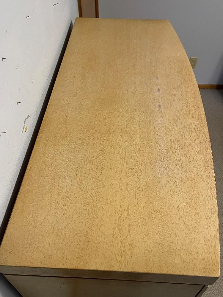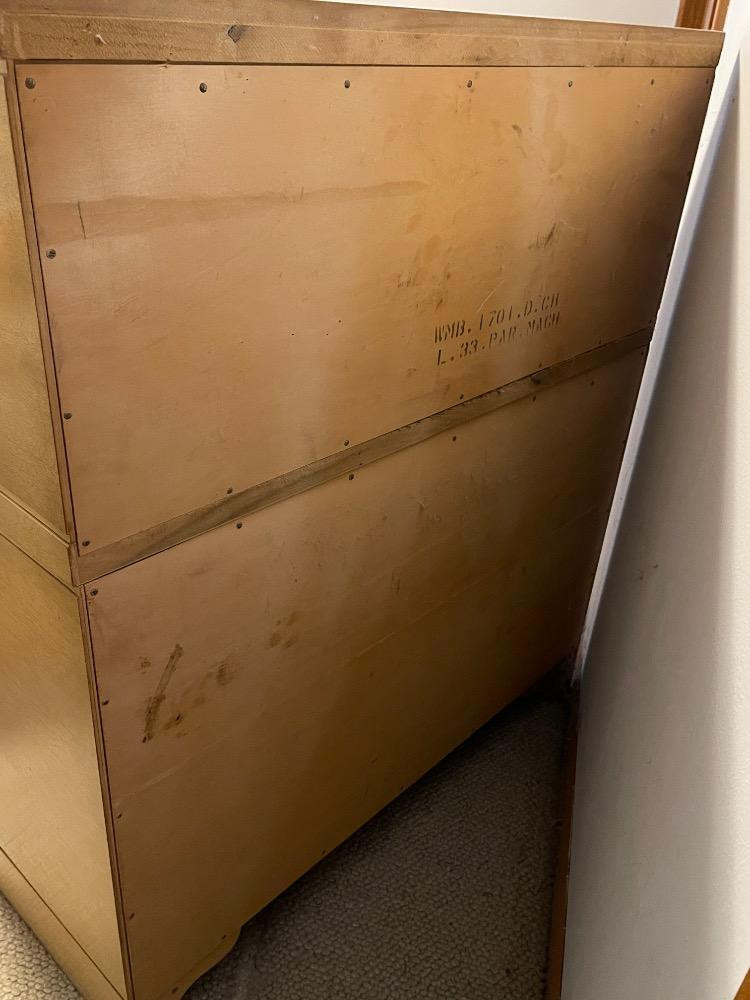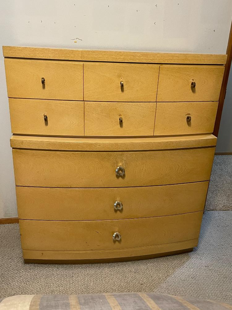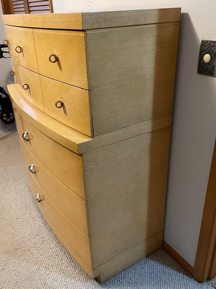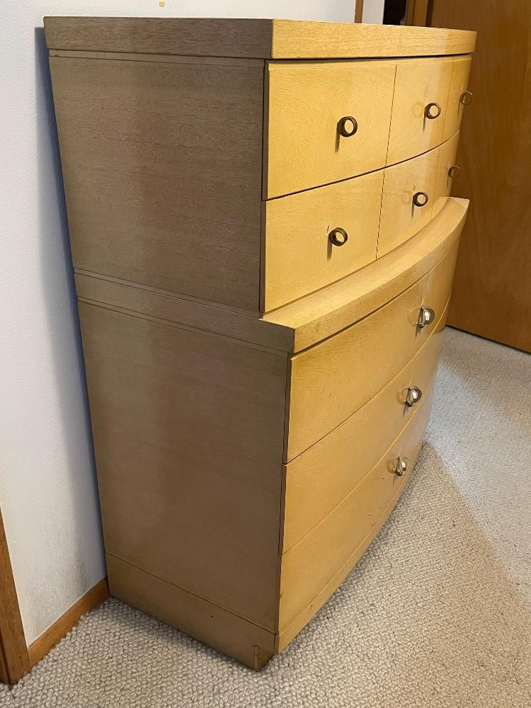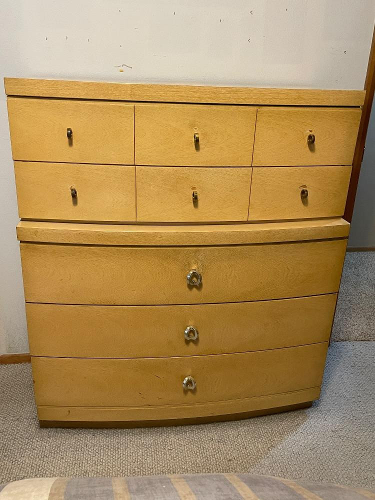 Beautiful mahogany dresser measures 40“ x 17.25“ x 45.75“ tall. Good used condition with wear to the finish above drawer pulls due to use. Looks like 2 pieces, but it is not.