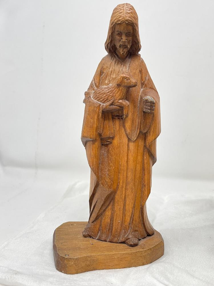 Bibles - Rosaries - Amulets - Pendants Carved Wood Jesus Statue 4”x3”x8.5”