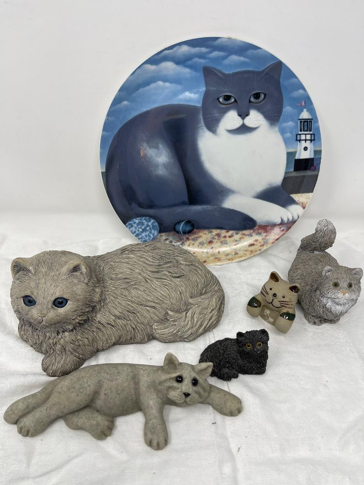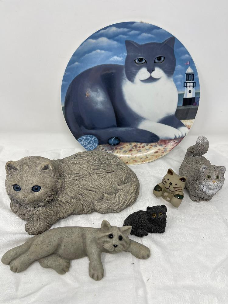 (6) Kitties Collection including "The Cats Away" Plate from Dept 56. The front cat, Chelsea from Quarry Critters