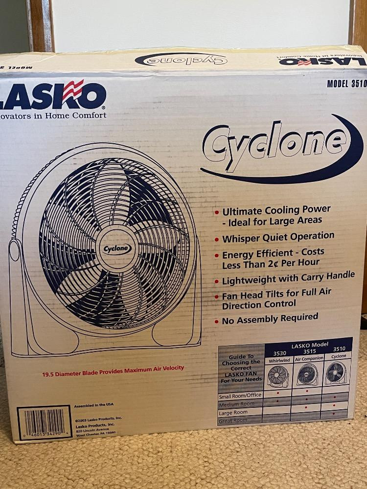 Lasko Cyclone 19.5” Floor Fan Mosel 3510. Needs cleaning. Tested, works!