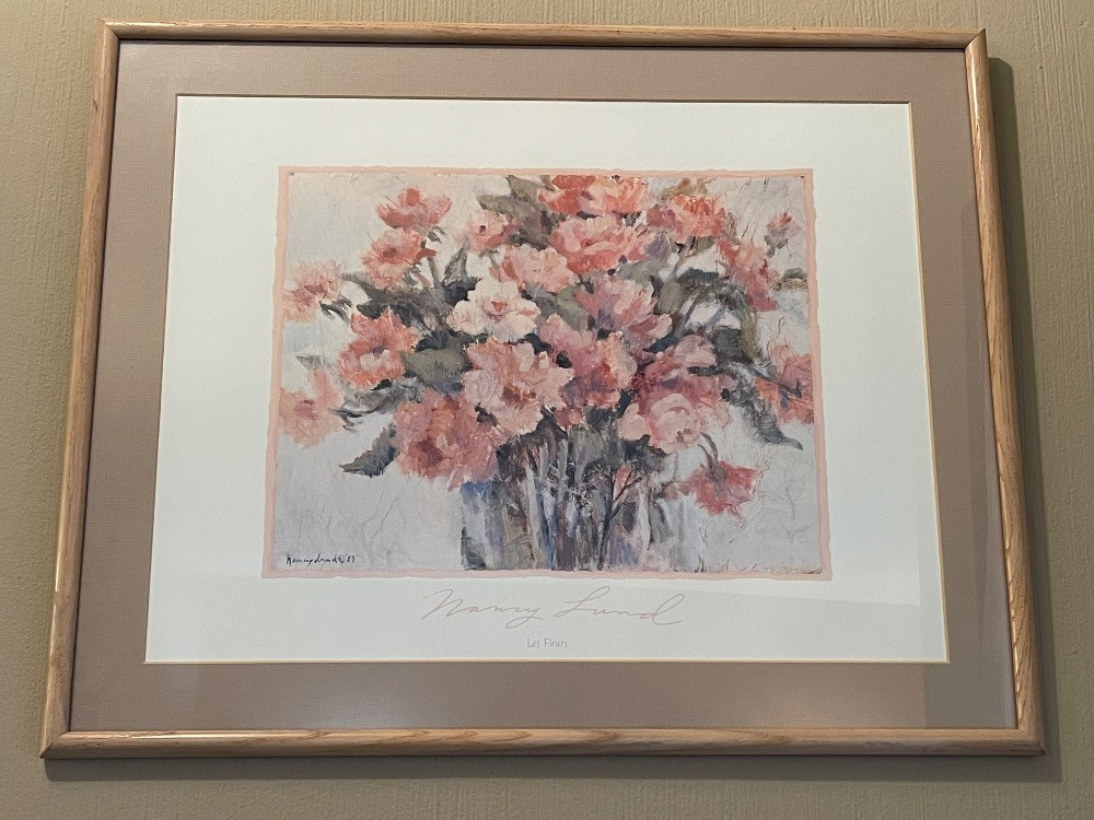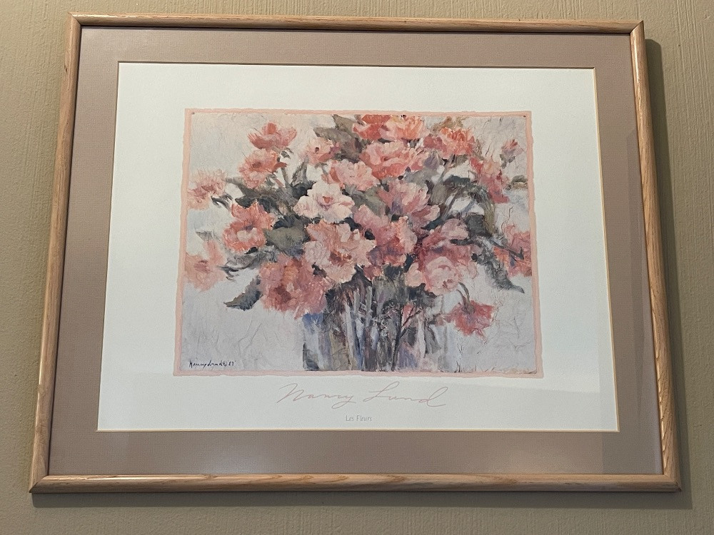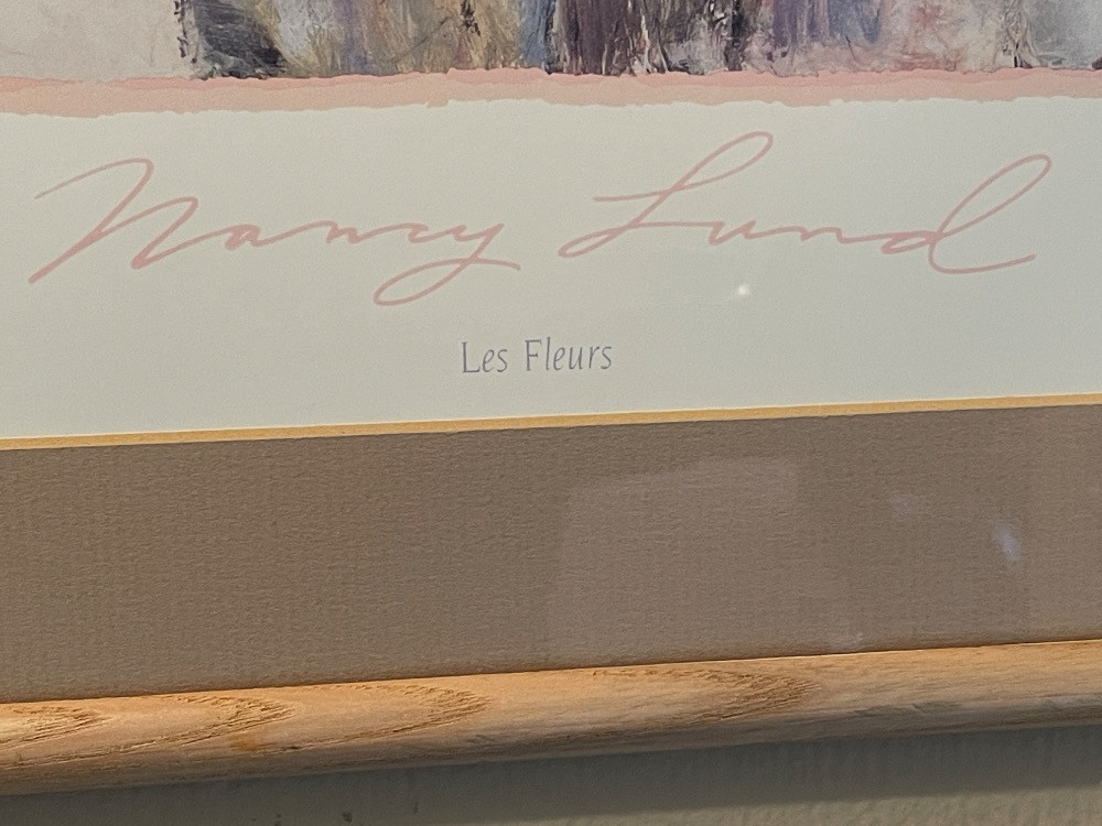 Les Fleurs a signed lithograph by Nancy Lund Measures 21”x17”