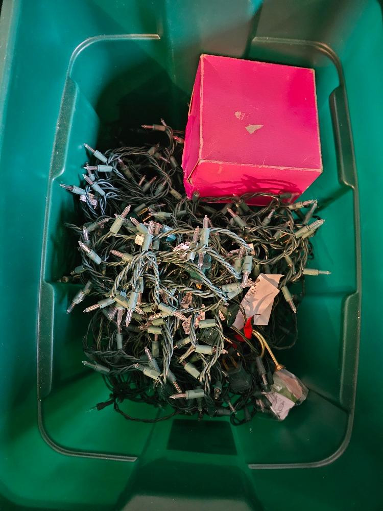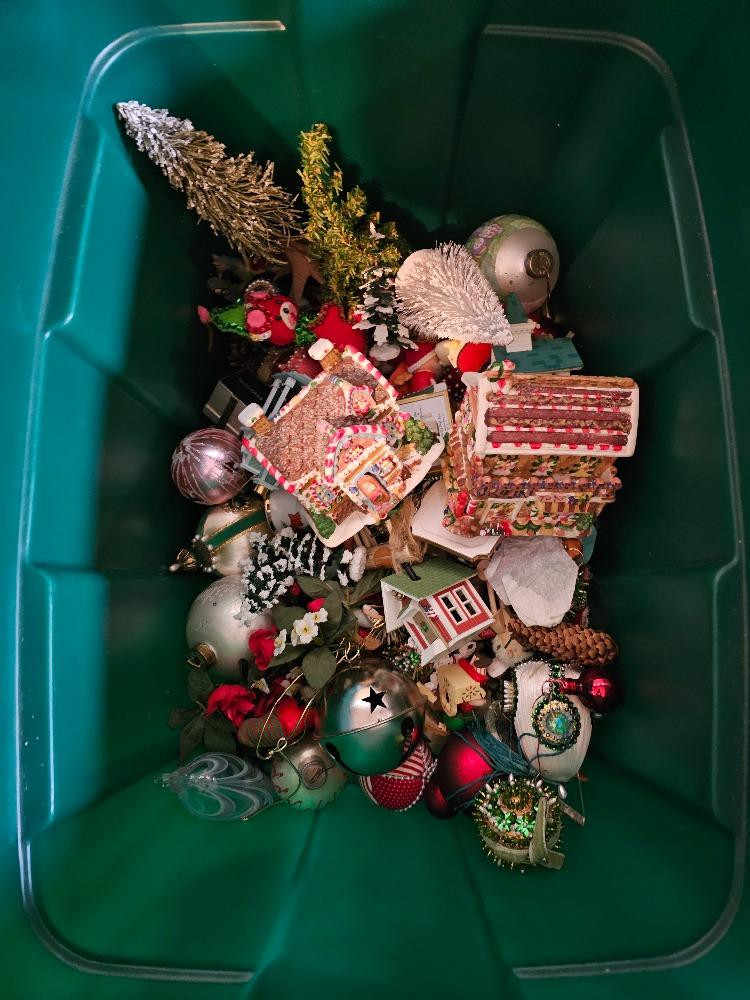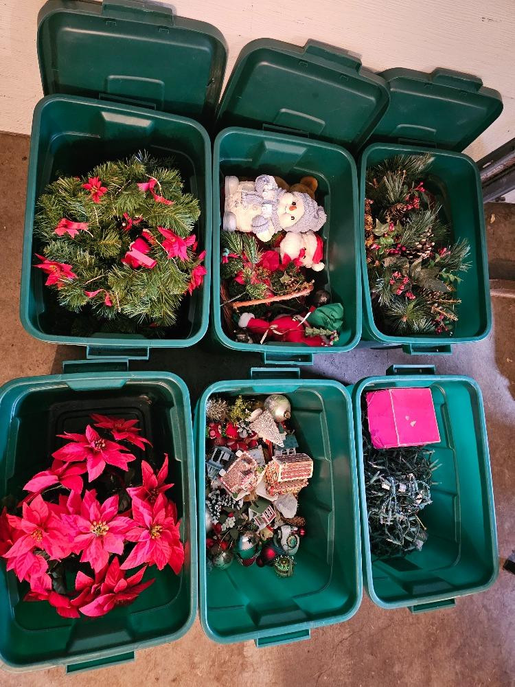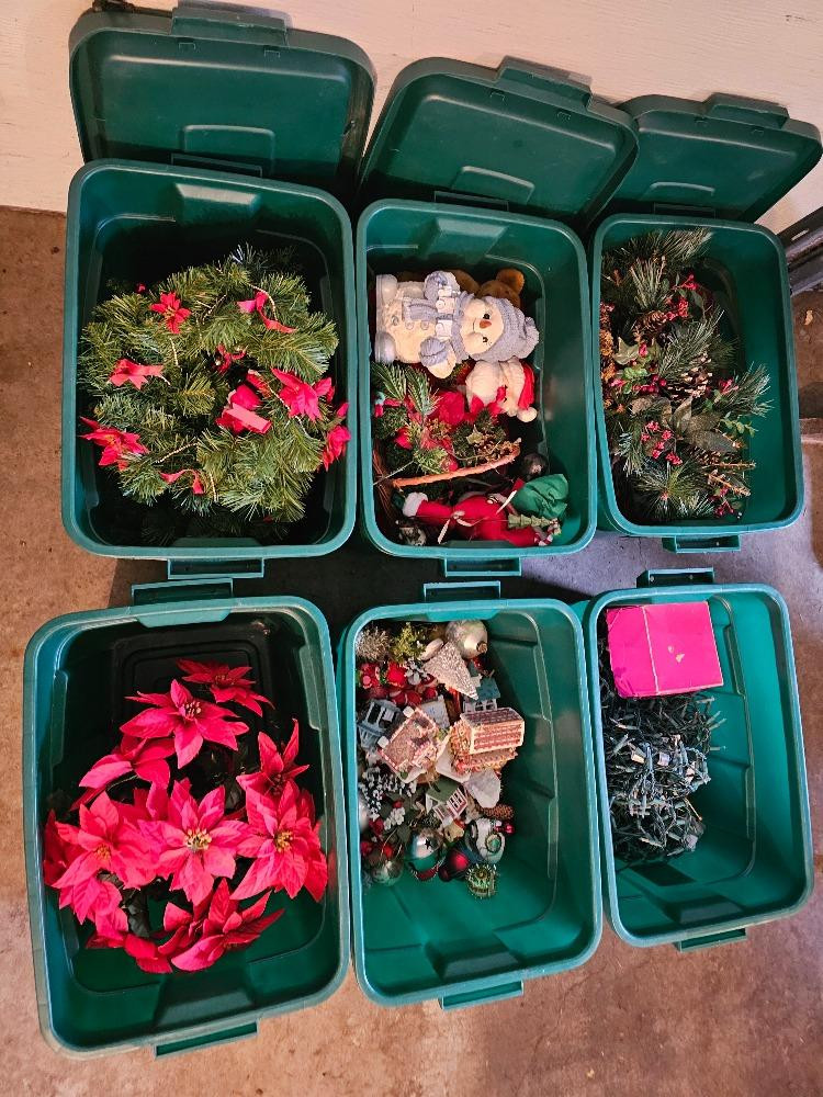 Lot # 87 - (6) Totes Of Christmas Ornaments, Lights & Decorations