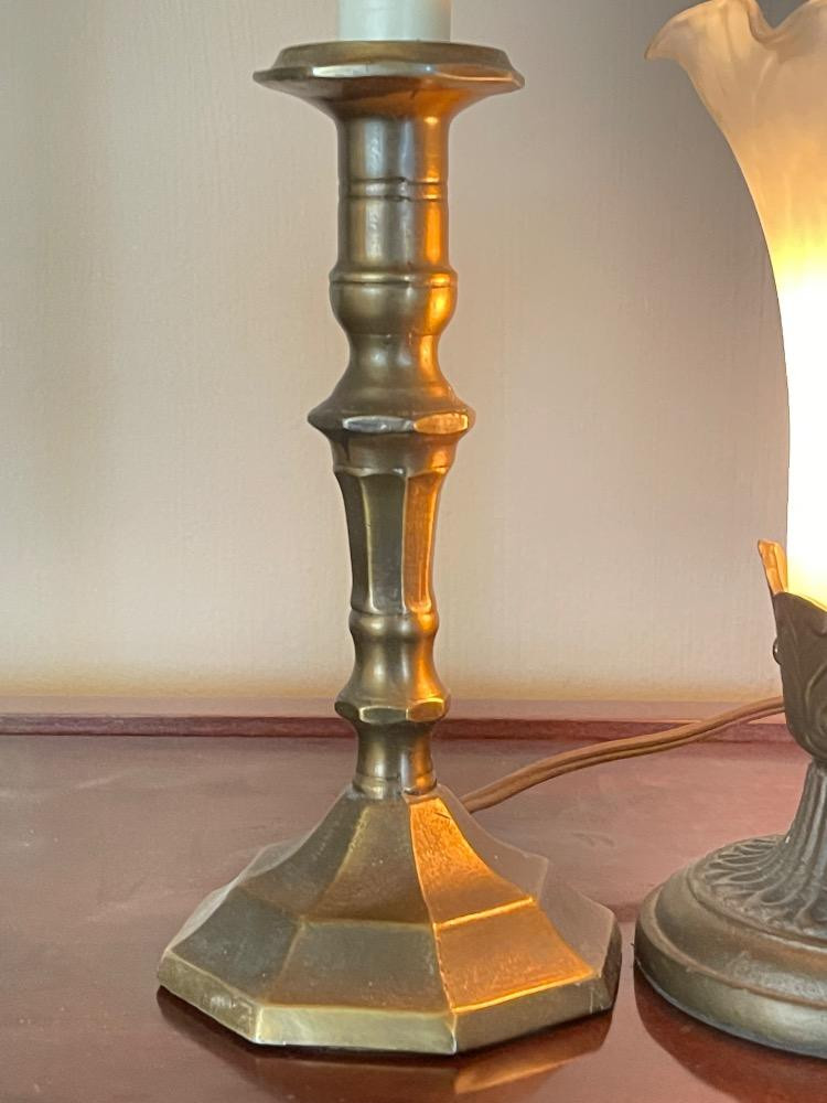 Lot # 93 - Brass Candlestick Lamp & Uplight With Glass Shade