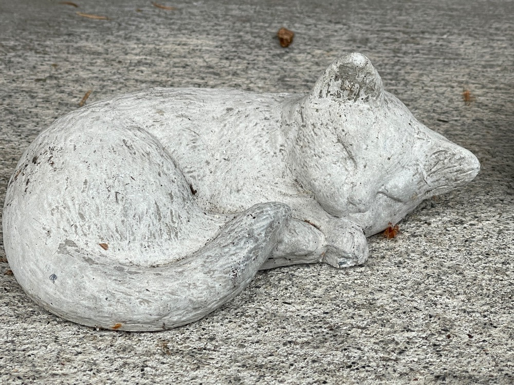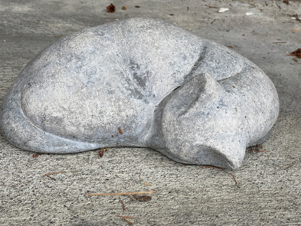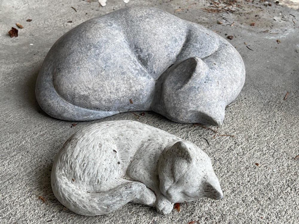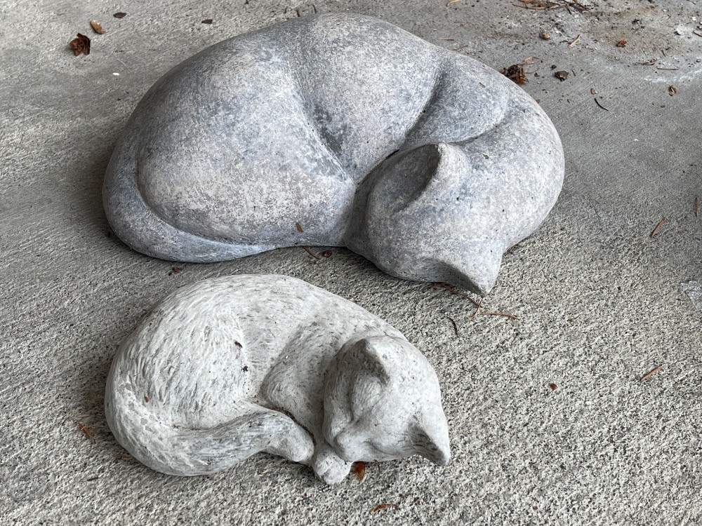 2 Cement Sleeping Porch Kitties. Largest measures 11”x9” Small measures 6.5”x5”