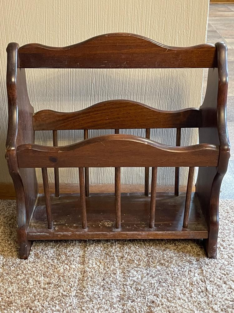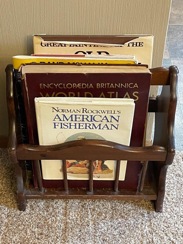 Lot # 109 - Mid-Century Dark Wood Magazine Holder - Coffee Table Books- Rockwell
