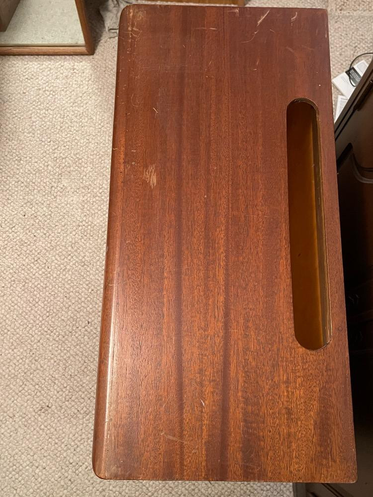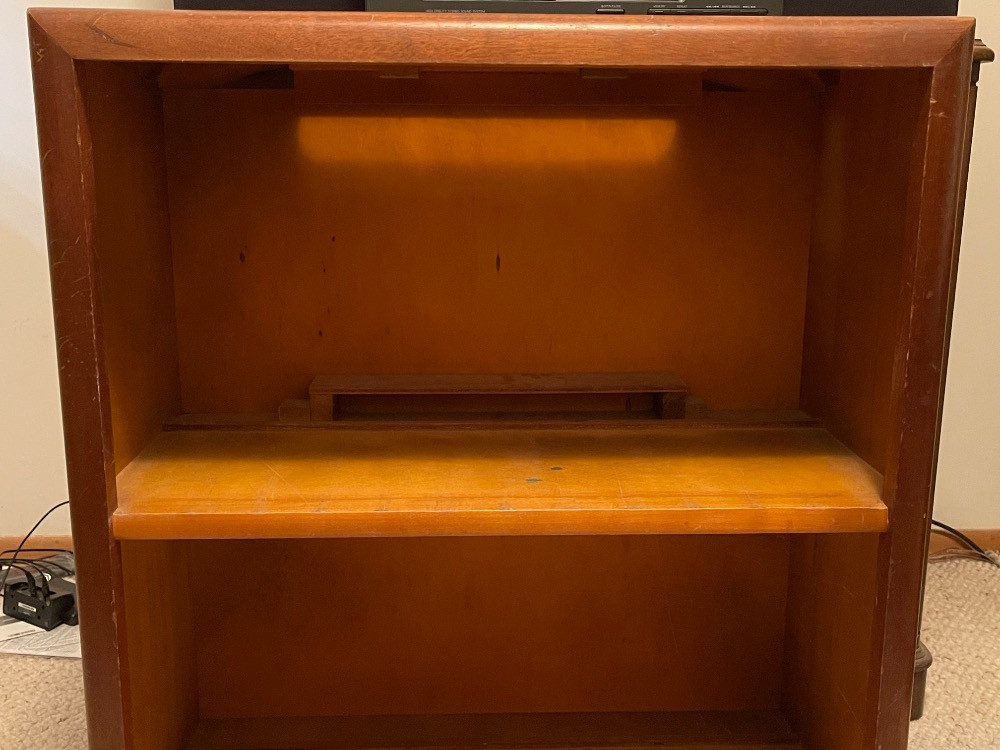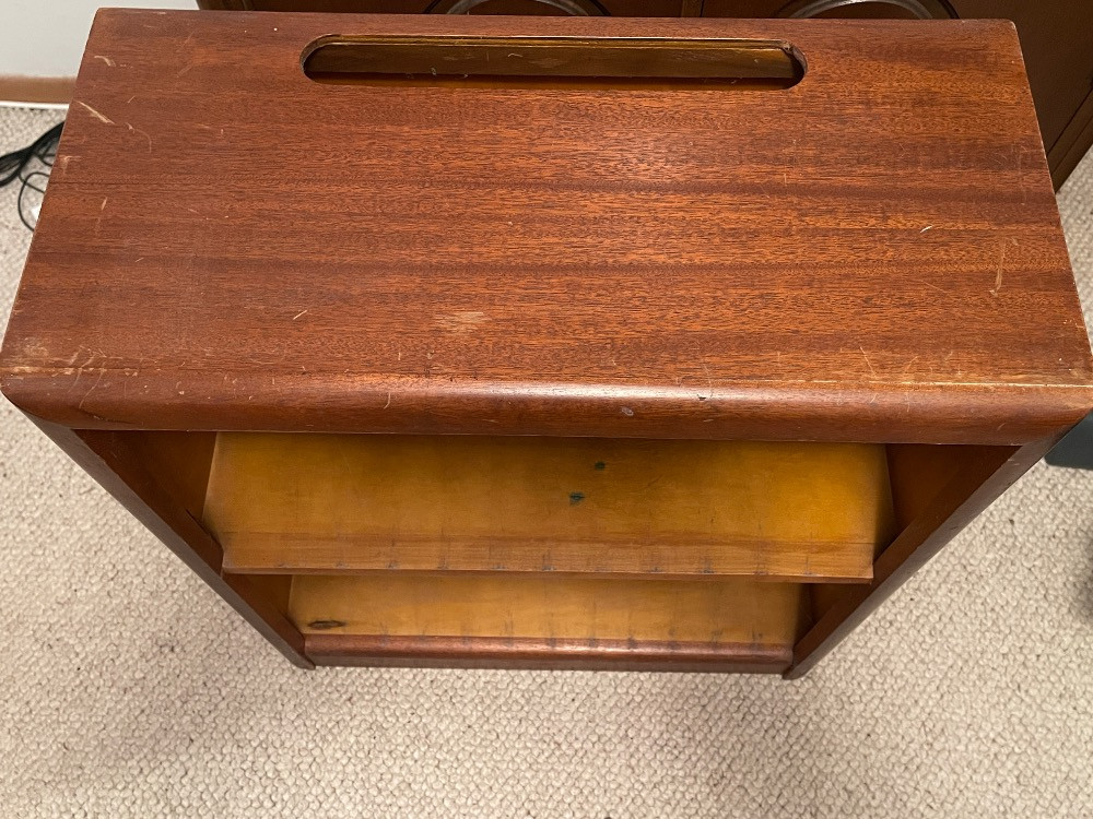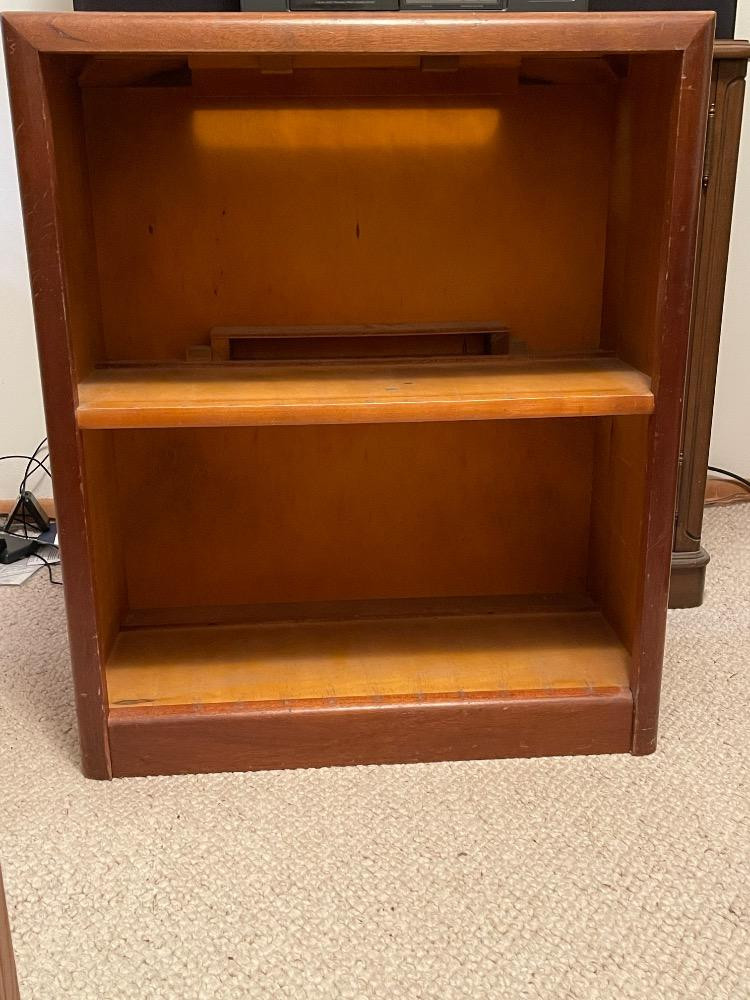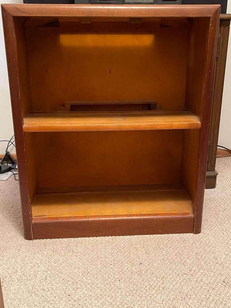 Custom Mahogany Freestanding Shelf Unit Measures 24“ x 11.75“ x 28.5“ tall.
