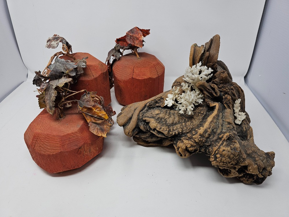 Lot # 130 - Hand Made Wood Pumpkins & Burl Knot Wood With Coral