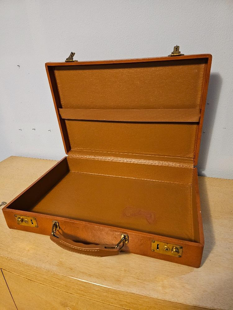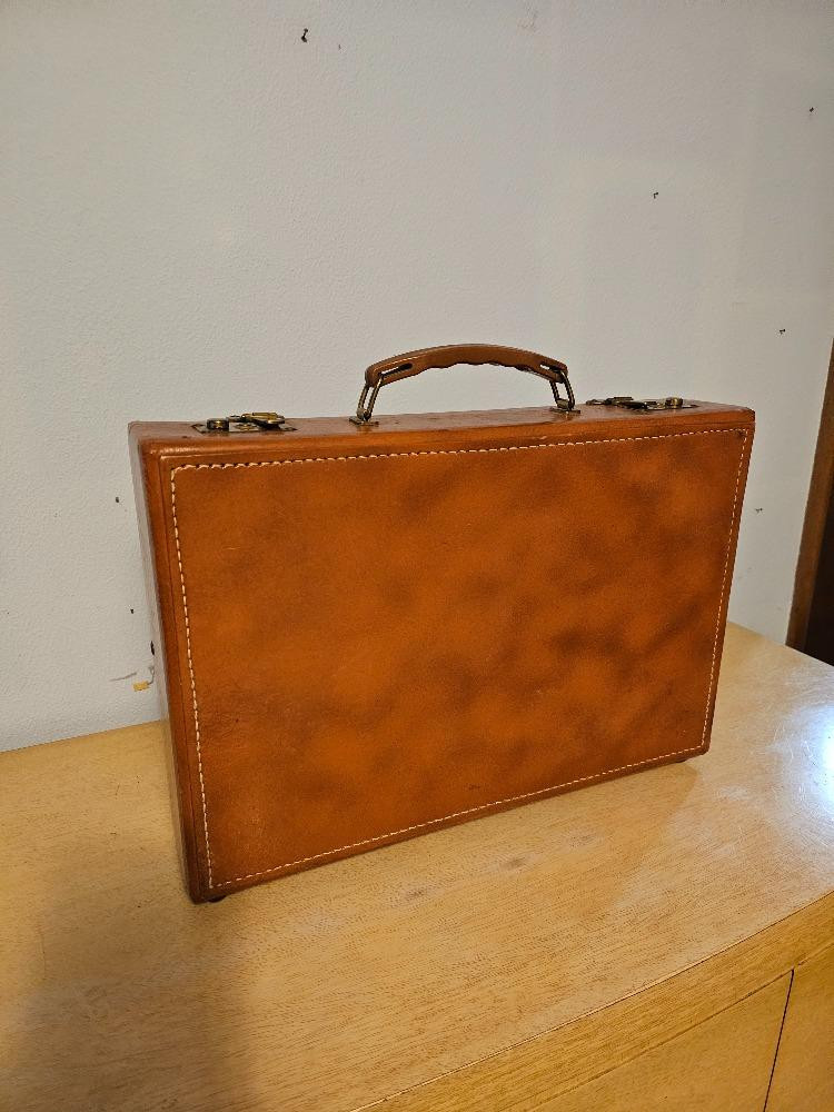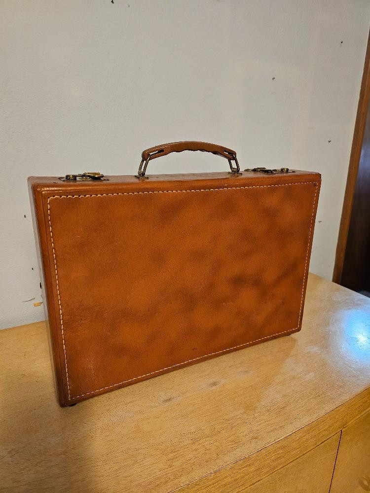 Vintage Brown Leather Briefcase Tan stitching Very nice condition (see pics of mark on inside) Both keys included 12"T x 17"W x 4"D