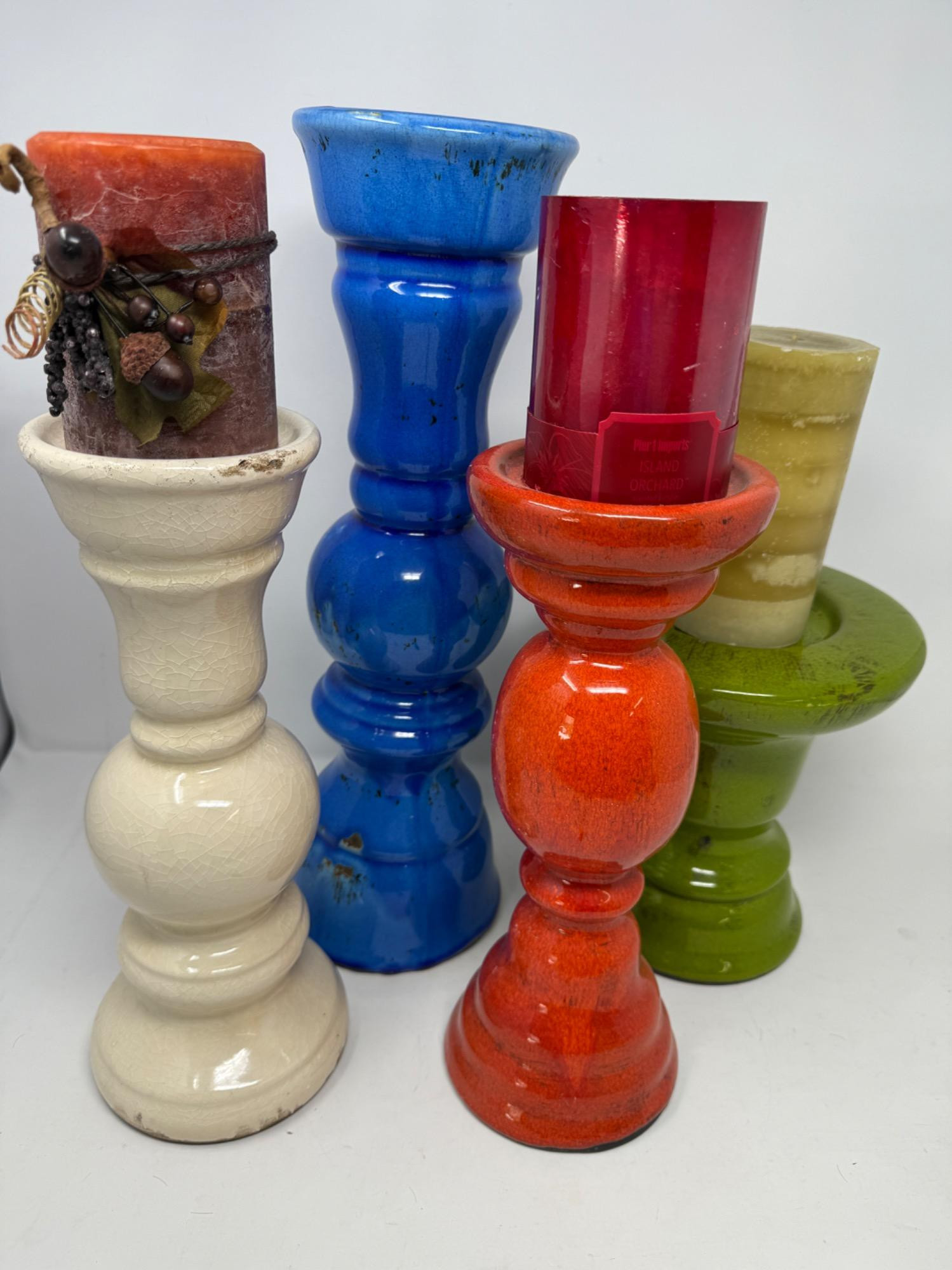 Colorful Ceramic Candleholders 17,12,12.5 & 8” heights with 3 candles