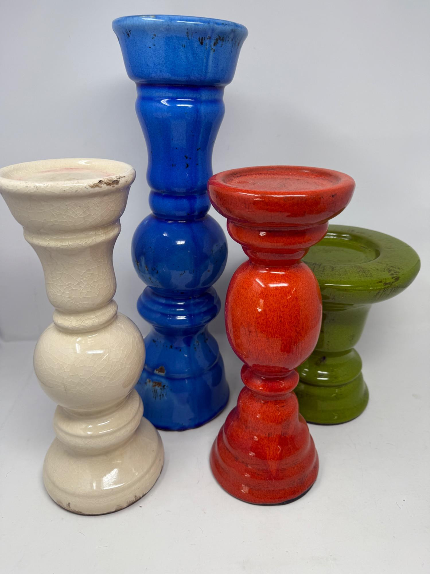 Lot # 8 - (4) Colorful Ceramic Candleholders