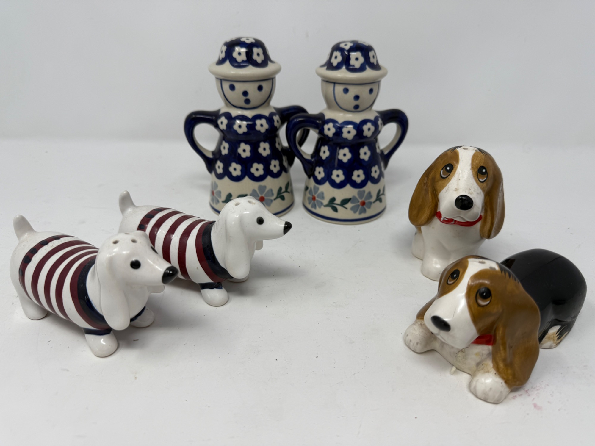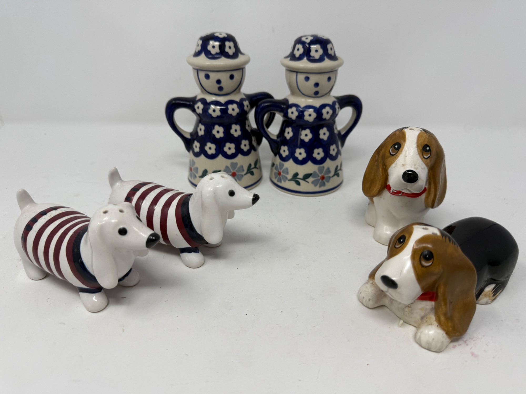 Lot # 15 - Polish Pottery, Bassett and Dachshund Salt & Pepper Shakers