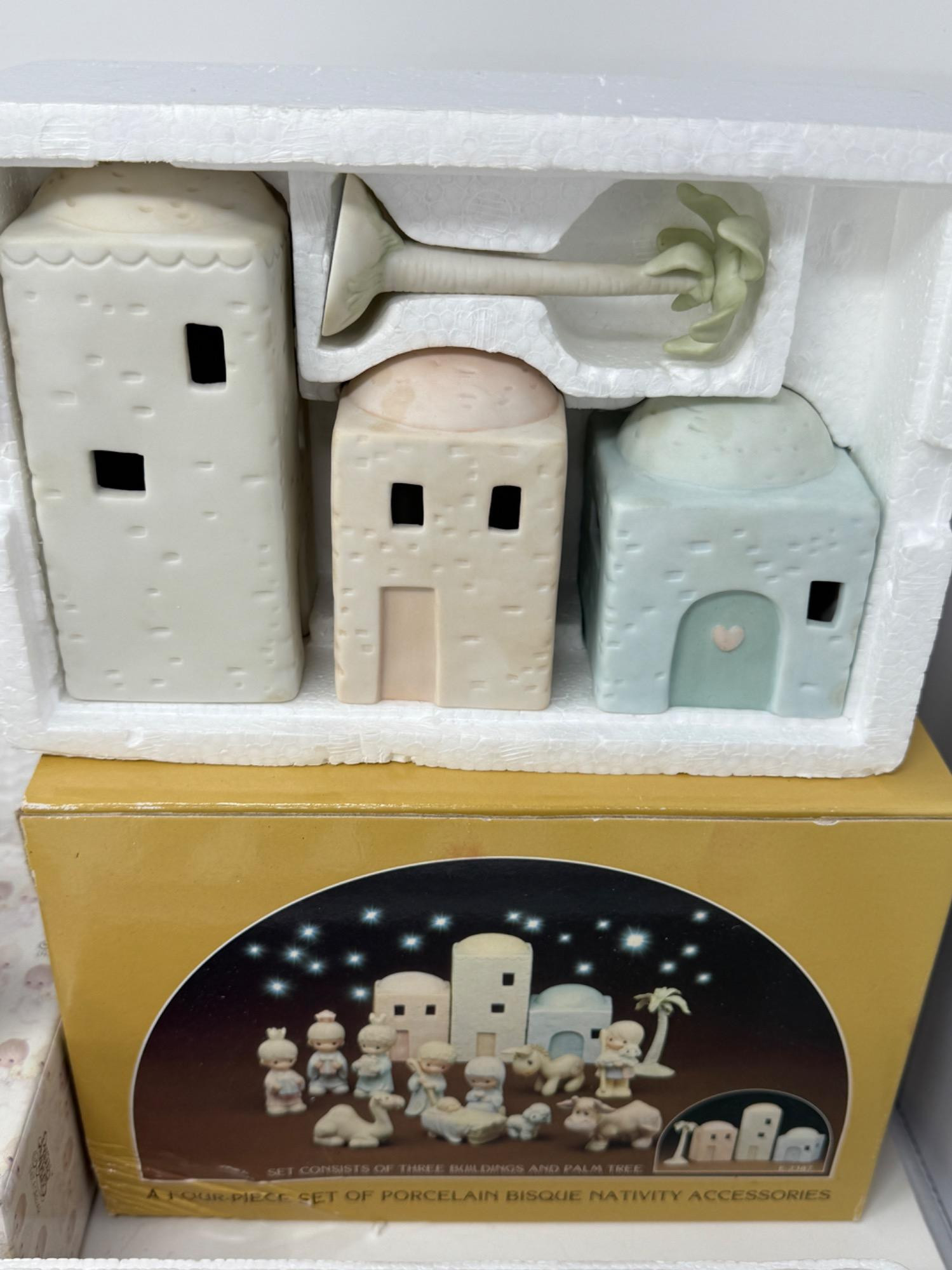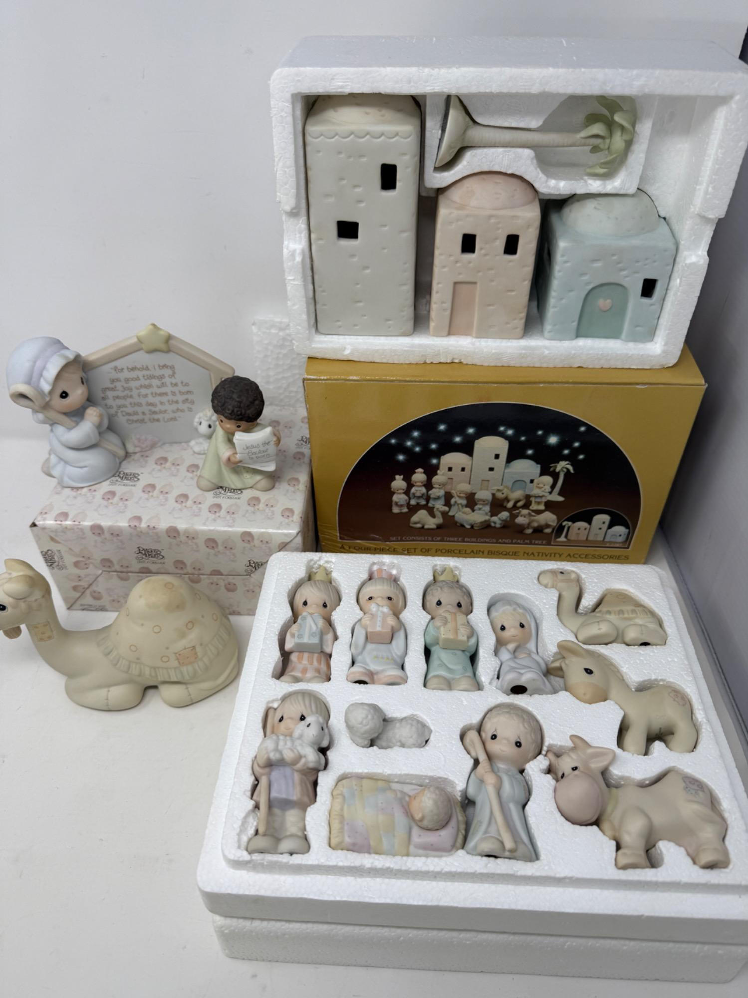 Lot # 16 - Precious Moments Porcelain Bisque Nativity Set and Extras