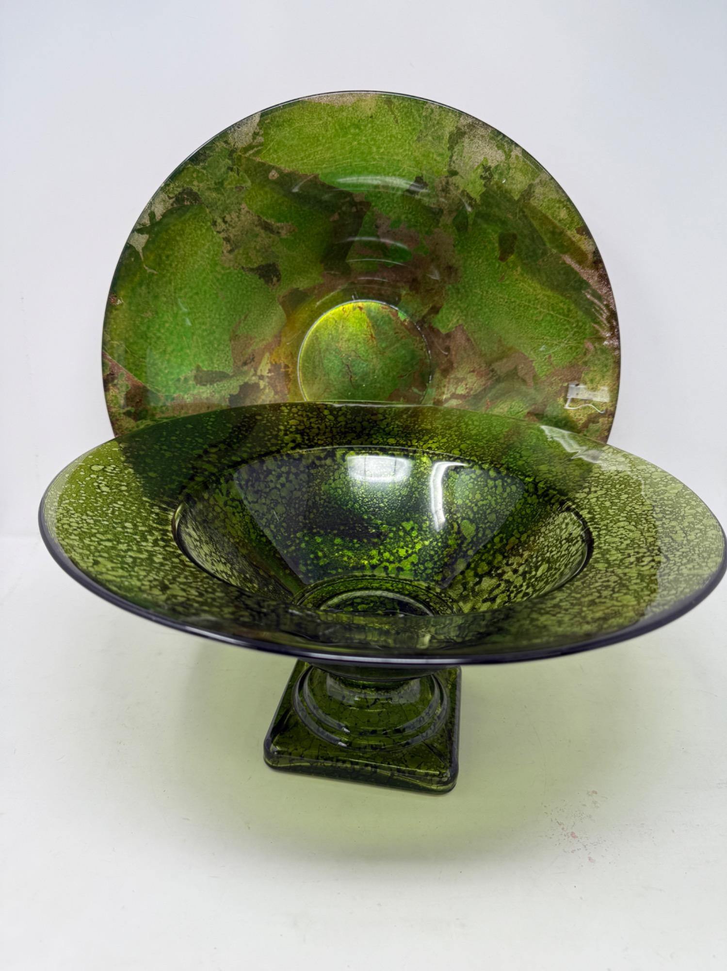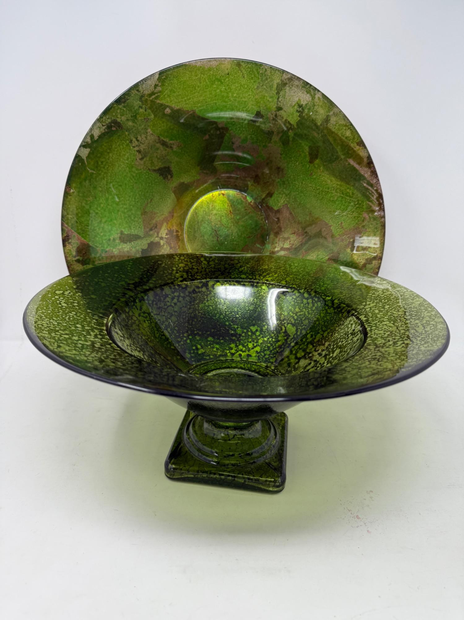 Green Centerpiece Bowls 16” green and gold bowl 14”x7” pedestal bowl