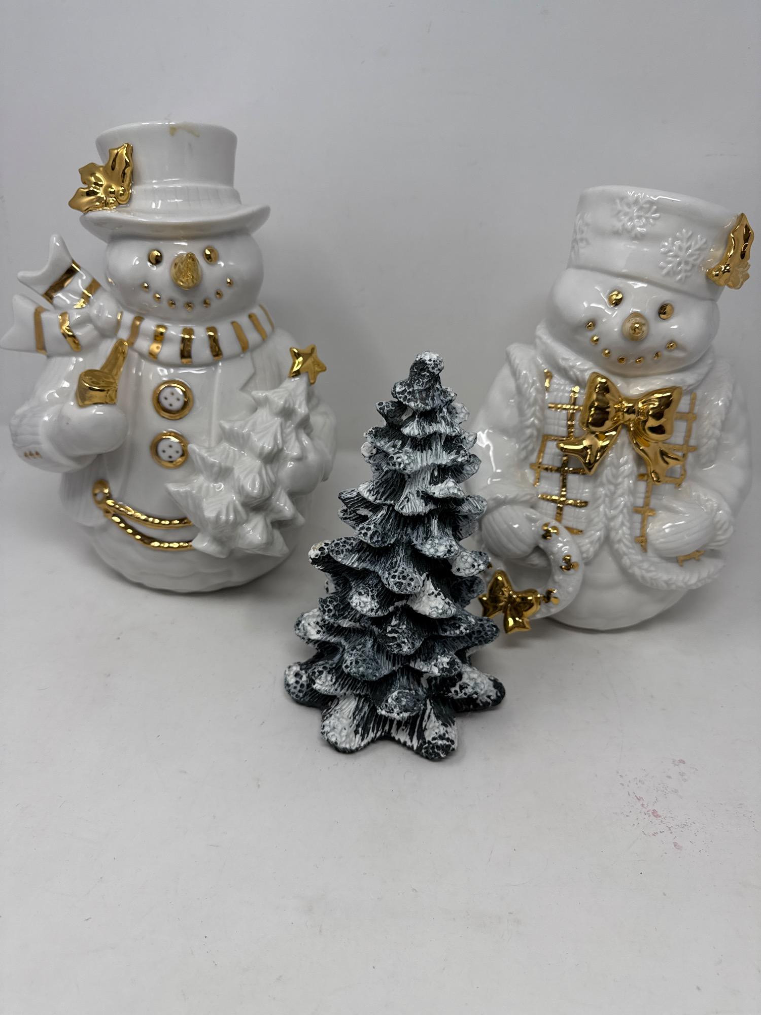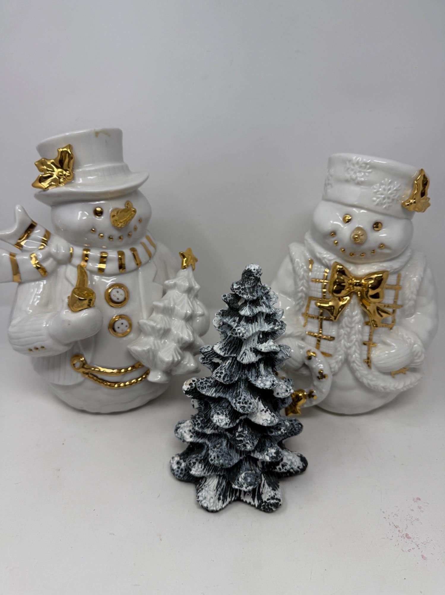 Porcelain Snow Couple and resin tree.