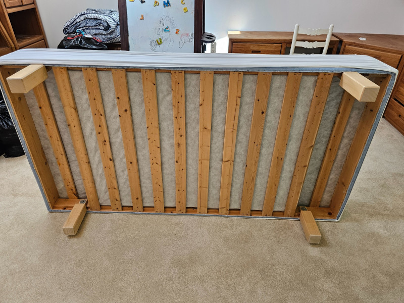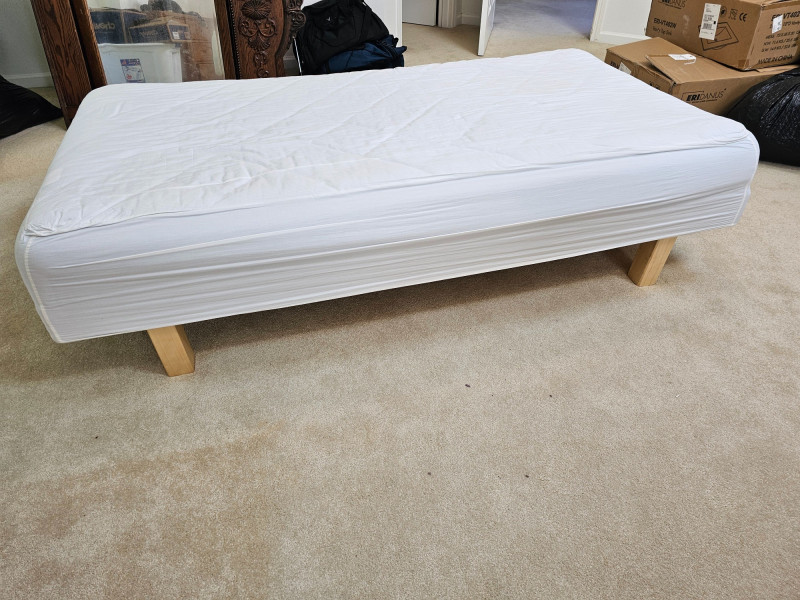 Twin Bed On Legs Nice bed for kids or extra bed for sleepovers! Includes mattress and cover 17"T x 75"L x 38"W