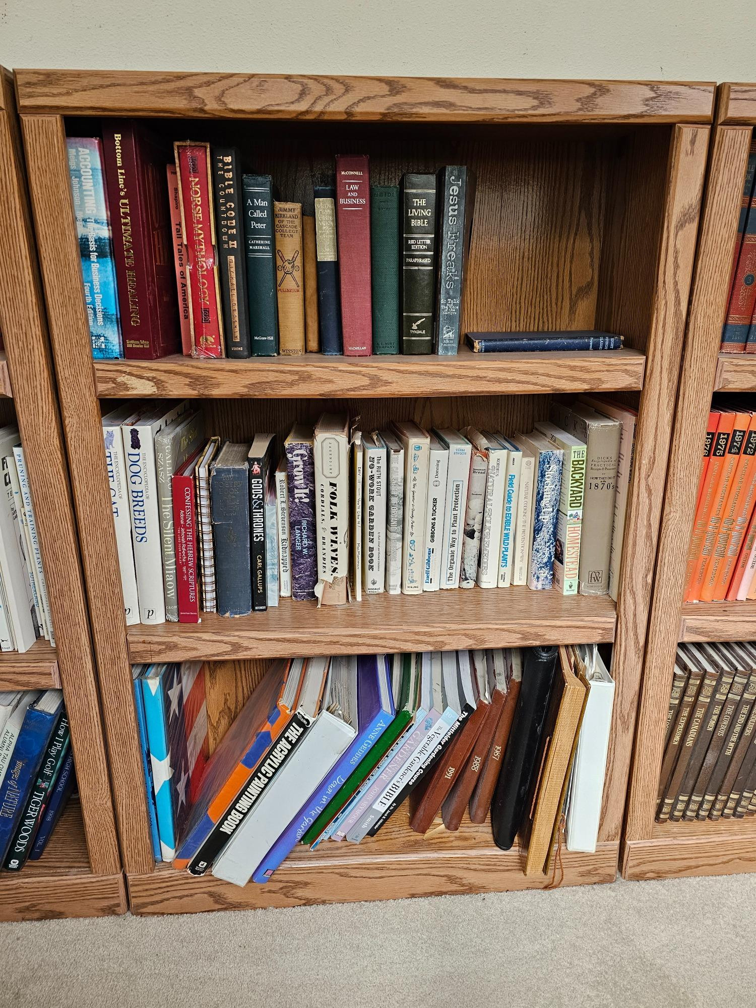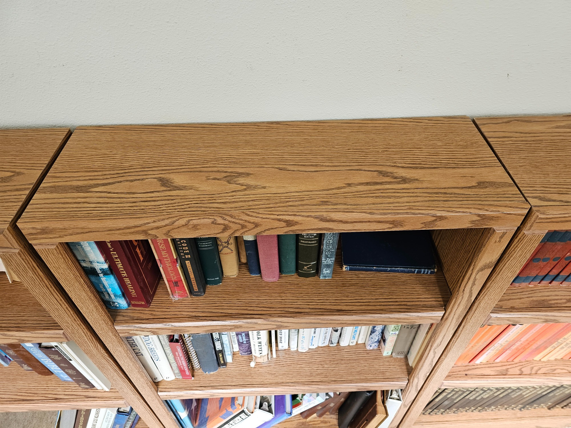Oak Veneer Bookcase With 2 Adjustable Shelves (#4) In good condition! 44"T x 29.5"W x 10"D The lot is bookcase only, books not included!