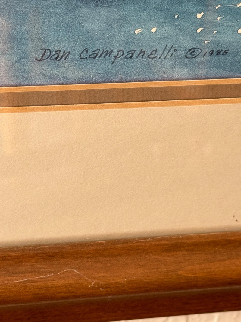 Big Wheel by Dan Campanelli 1985 Measures 33”x26.5” double matted with wood frame.