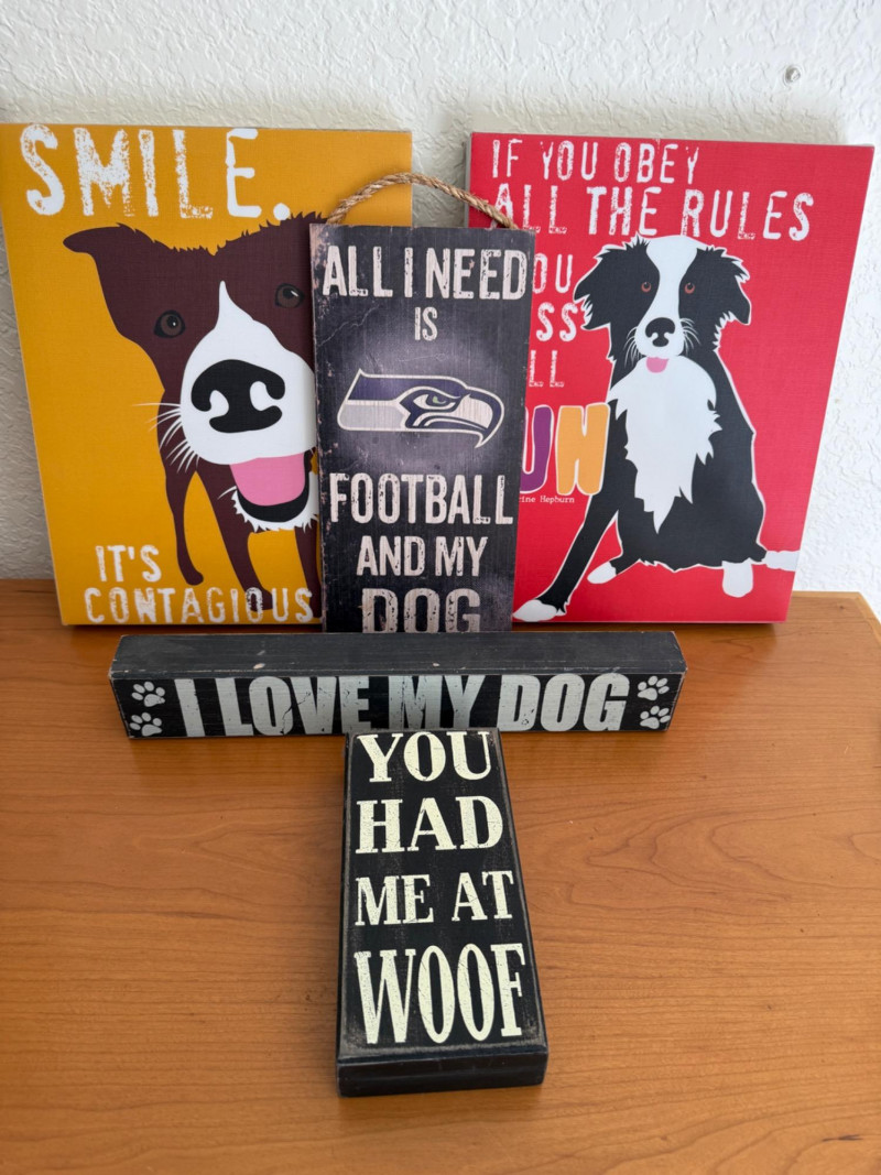 Lot # 94 - (5) Dog Canvas and Wood Signs