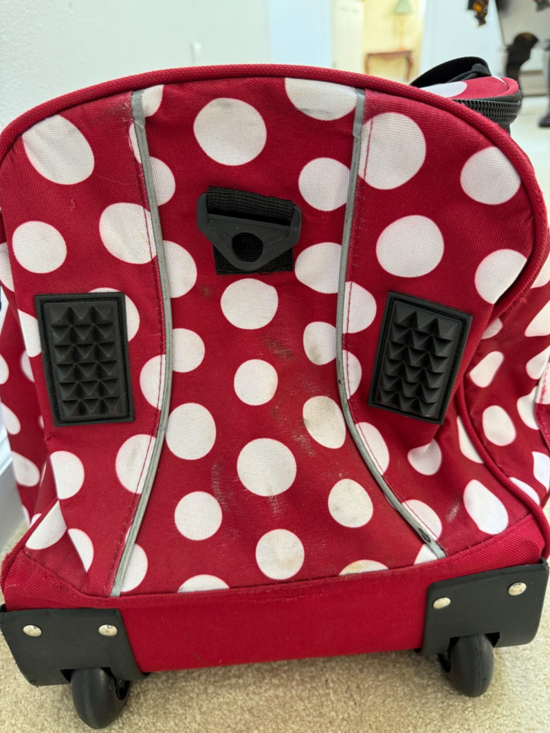 Lot # 105 - Red Polka Dot Rolling Duffle Bag With Zebra Weekender