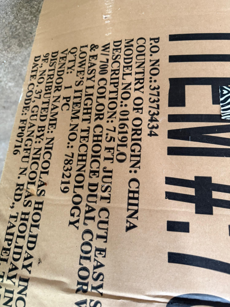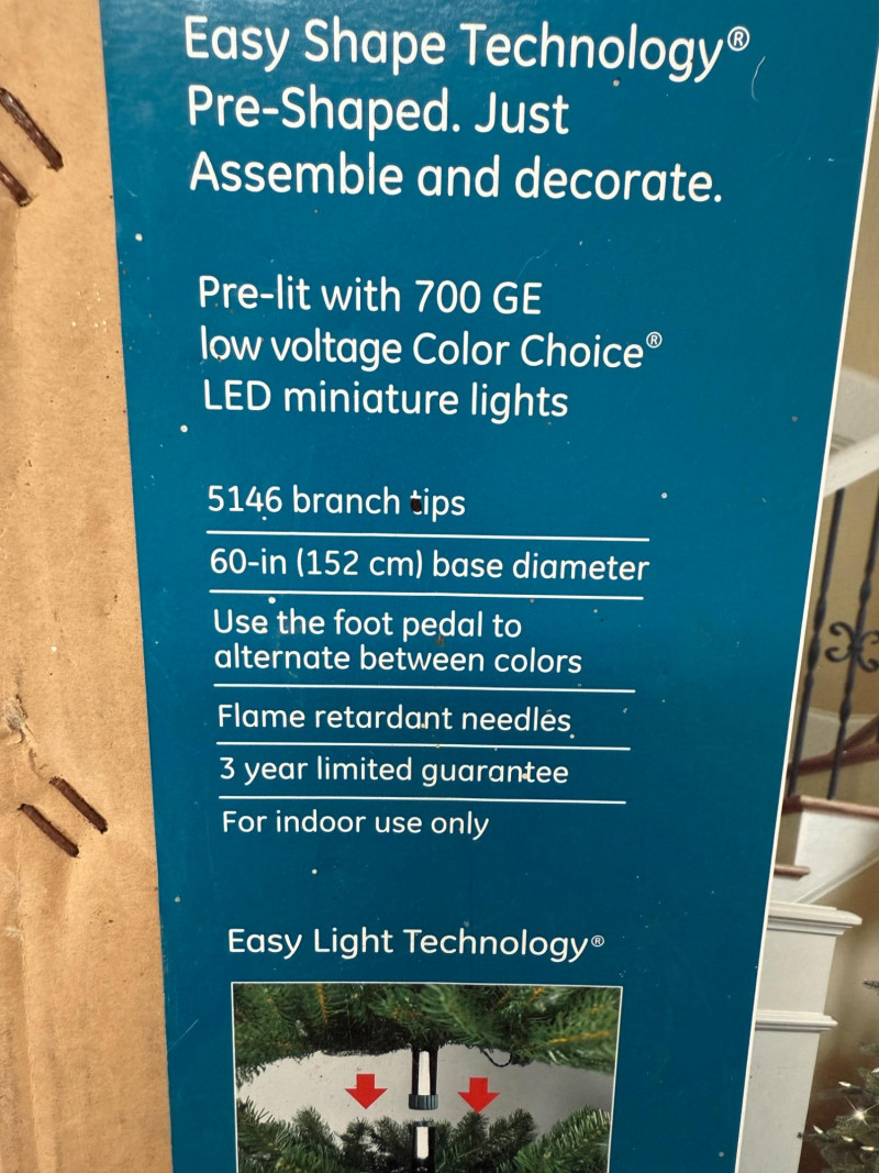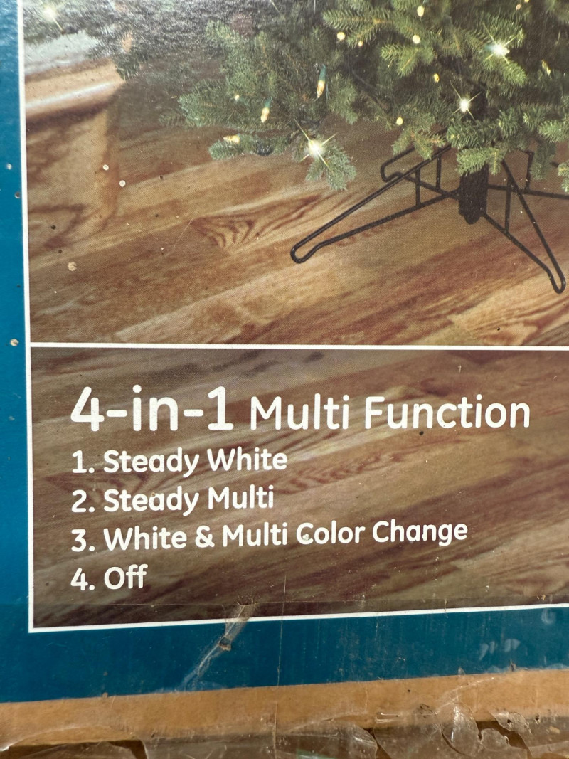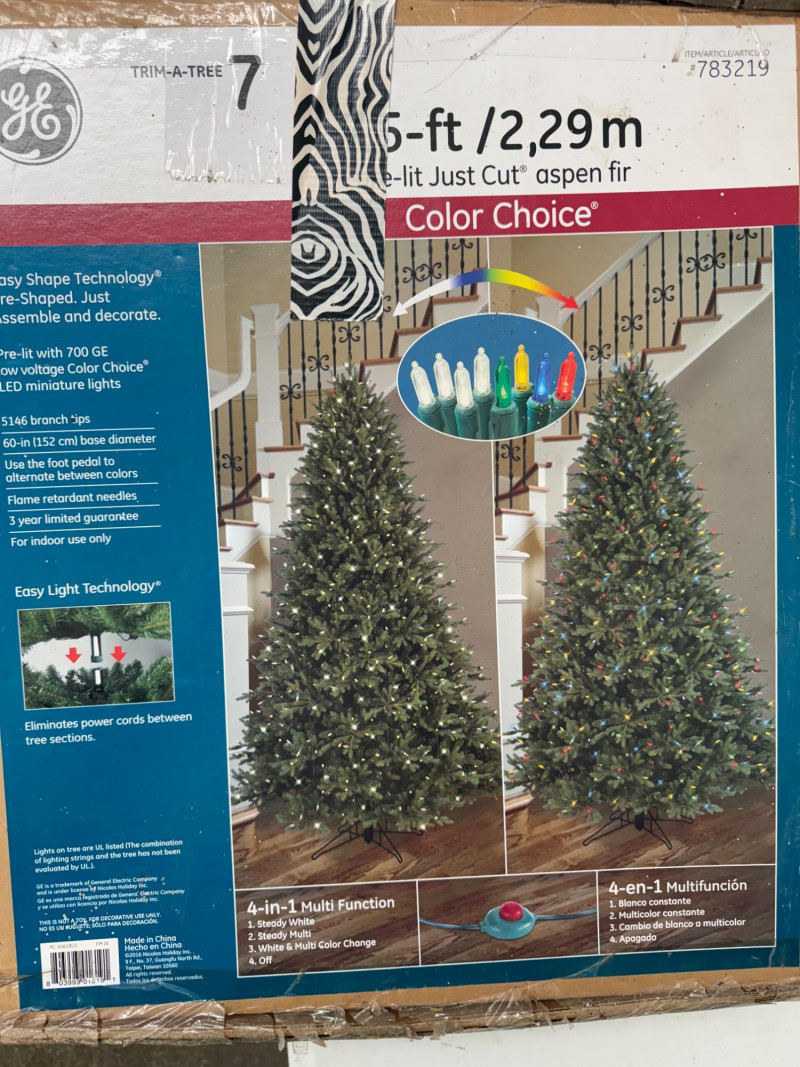 7.5’ GE Trim a Tree Aspen Fir White or Color Lighted Tree. Untested. 3 pieces fit together and the lights connect. Nice looking tree.