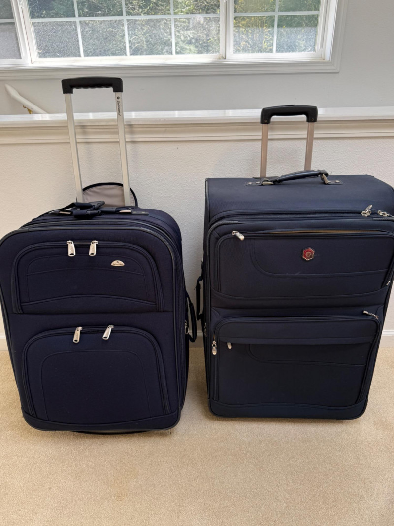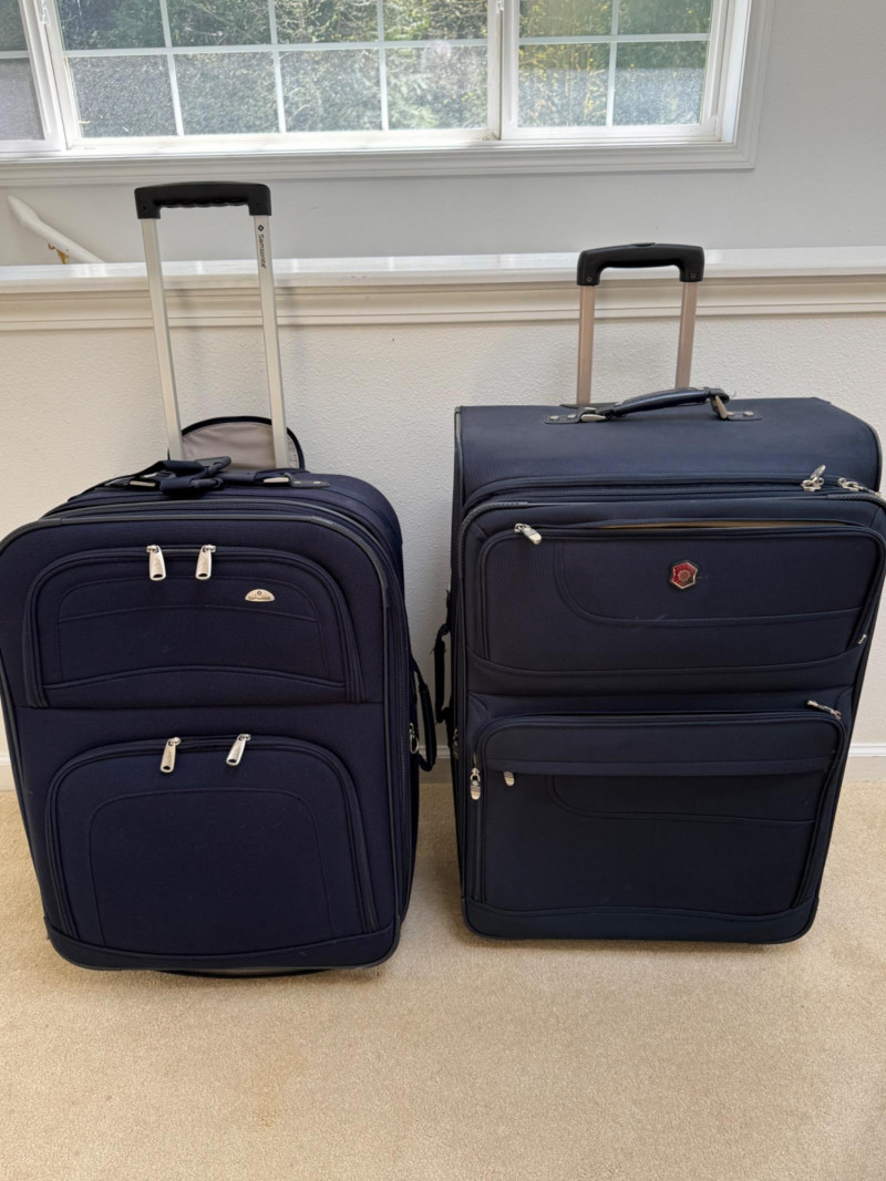 Dark blue full size suitcases. Samsonite and Pacific Coast.
