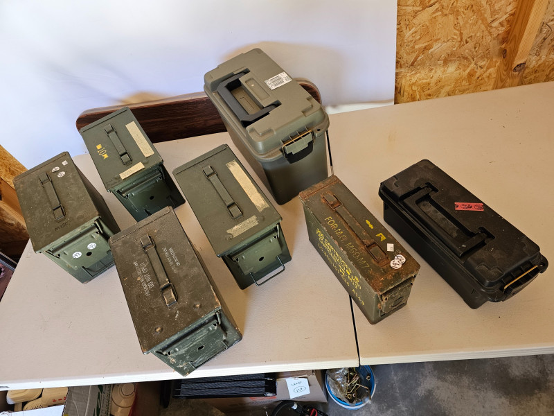(7) Ammo Cans (empty) (4) Large metal ammo cans (1) Small metal ammo can (2) Plastic ammo cans Who doesn't need extra ammo cans?