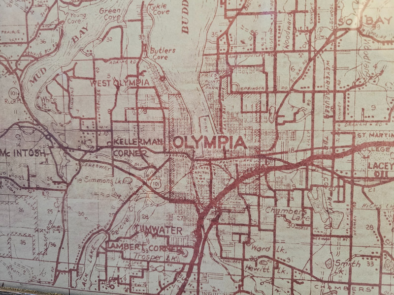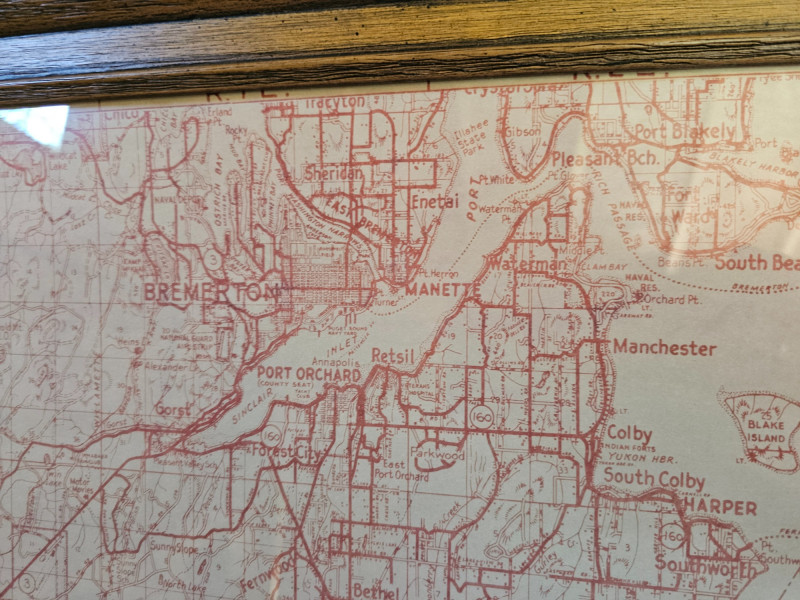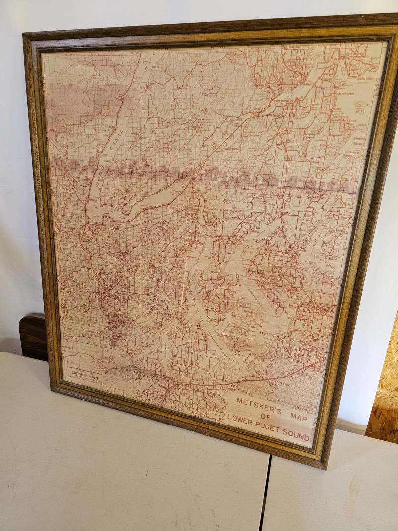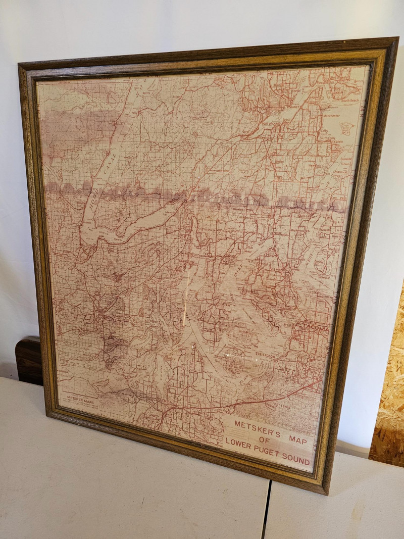 Framed Vintage Metsker's Map Of Lower Puget Sound Nice display art showing the "Lower Puget Sound" from Bremerton to Olympia Appears professionally framed 35"T x 29.5"W Some darkening of the paper in some areas (see pics) Great piece!