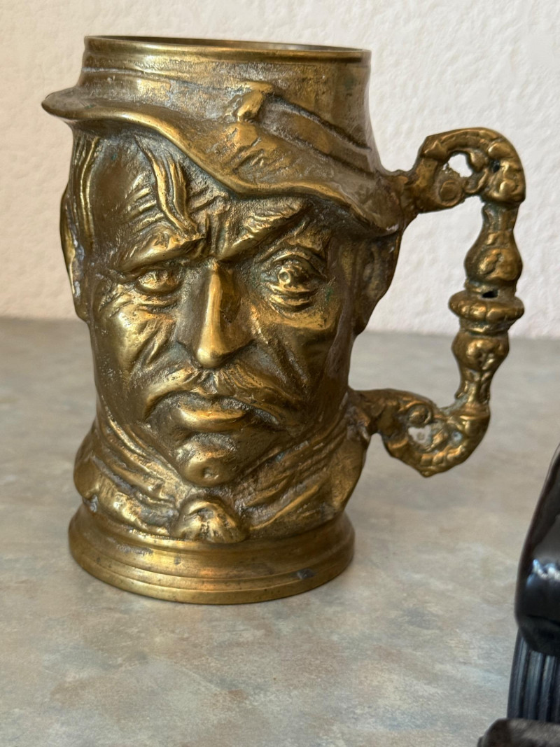 Lot # 21 - Vintage Brass Civil War Soldier Stein & Wood Roadster