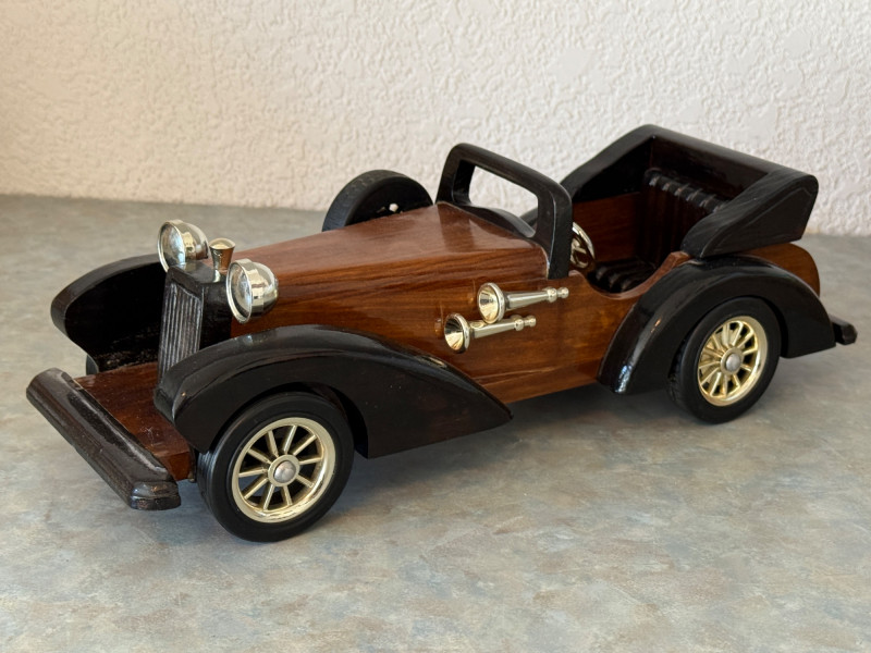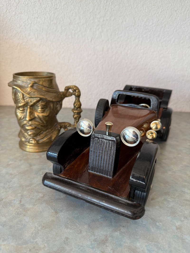 Vintage Brass Civil War Soldier Stein & Wood Roadster Brass Stein is 5.5”x5” 15” Heritage Mint Roadster made of wood with plastic chrome parts. Wheels spin.