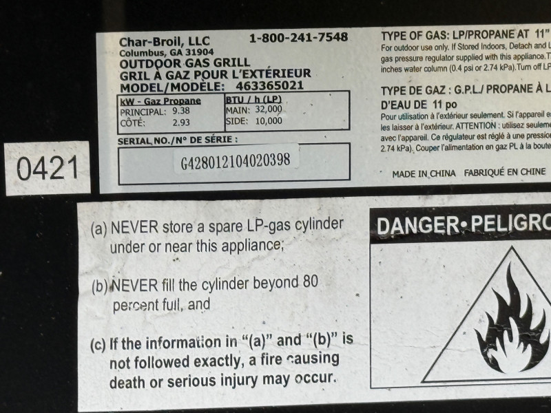 Charbroil Performance Grill With Burner & 2 Tanks Untested