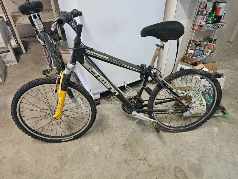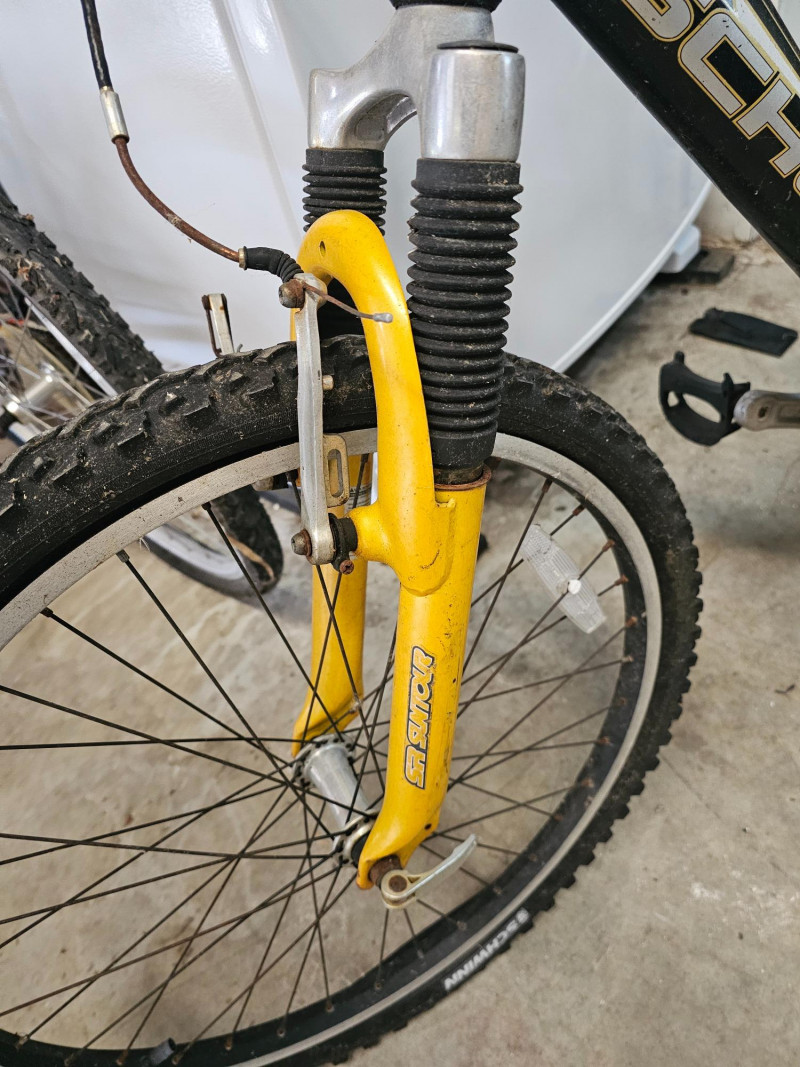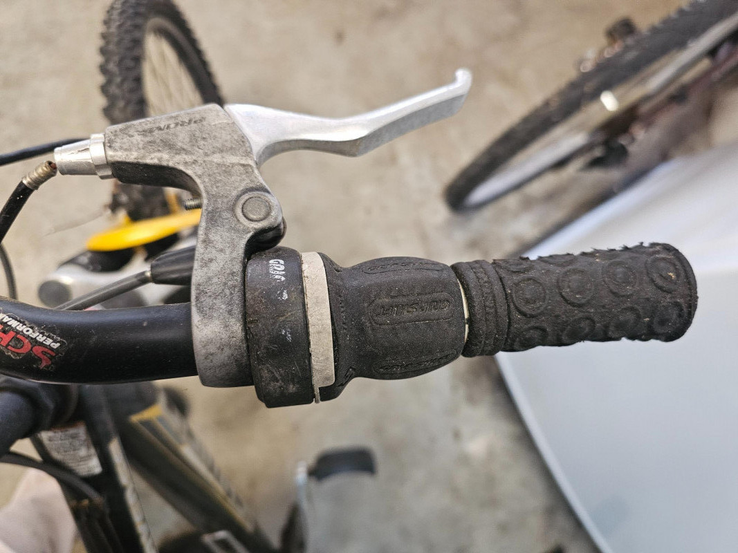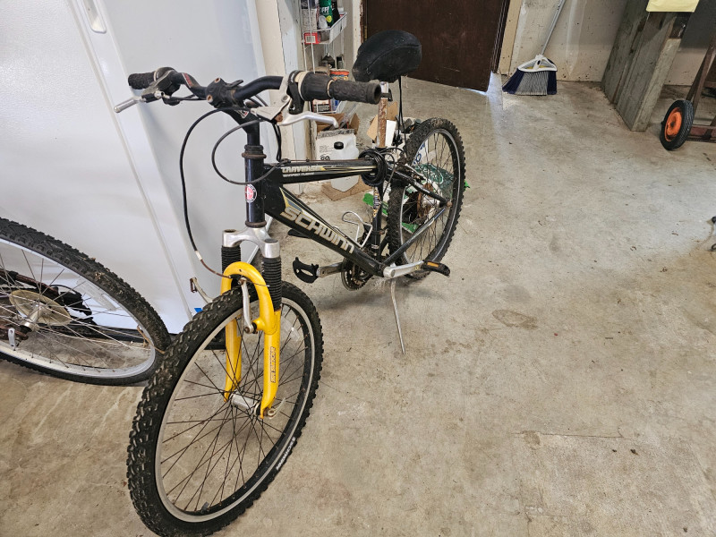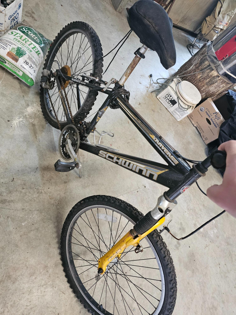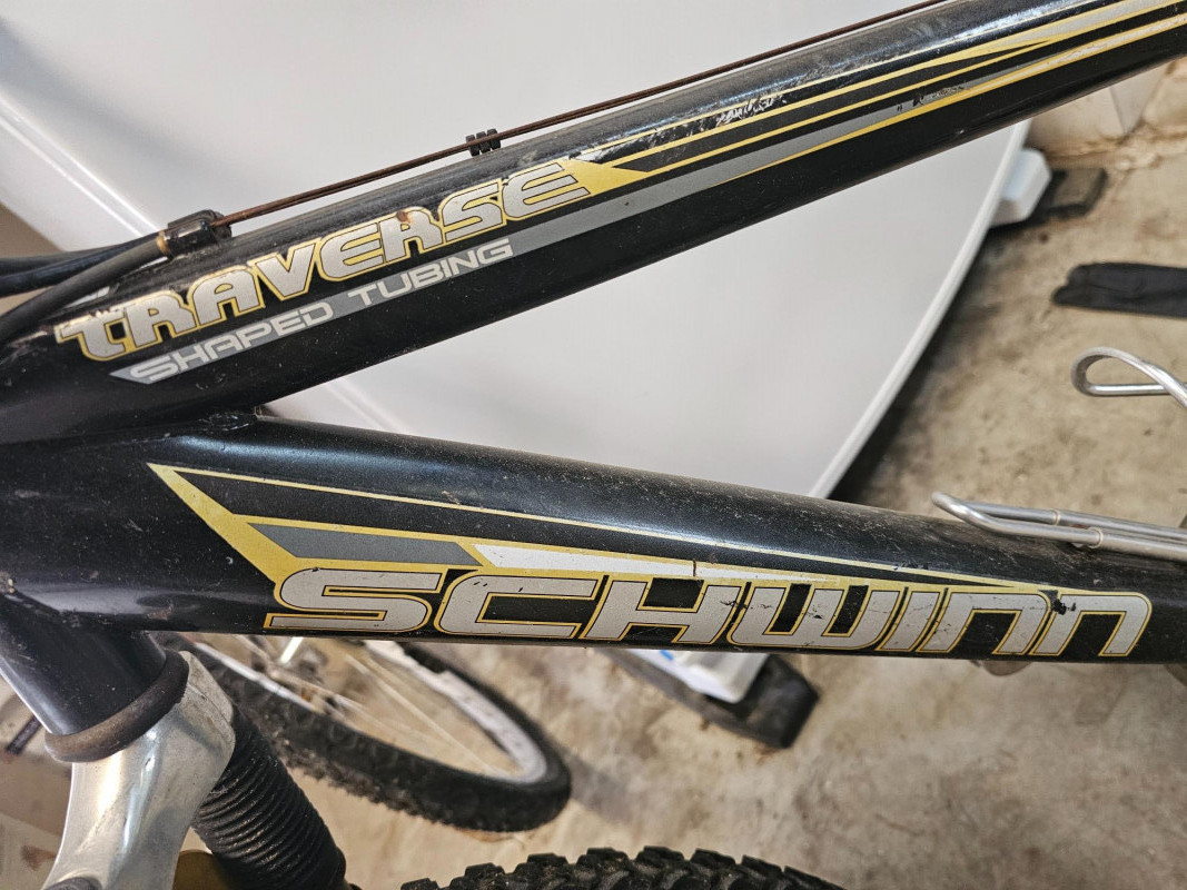 Schwinn Traverse 20" Boy's Front Suspension Mountain Bike SR Suntour front suspension forks High-Ten shaped tube frame PROMAX brakes Shimano 21-speed grip shift Weinmann aluminum alloy quick-release rims Tires are flat, front brake needs reconnected and bike could probably use some general maintenance. Some surface rust on handlebars and seat post. Appears to be in good used condition!