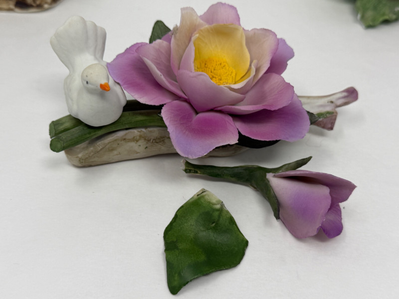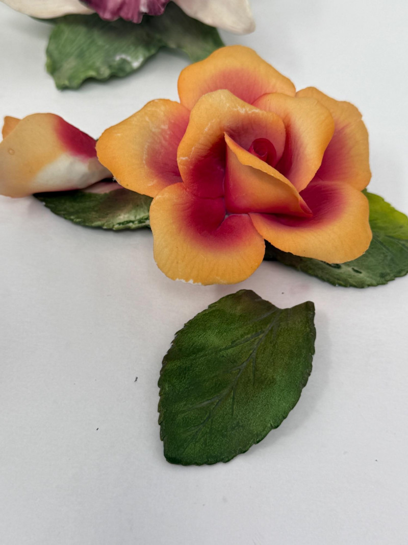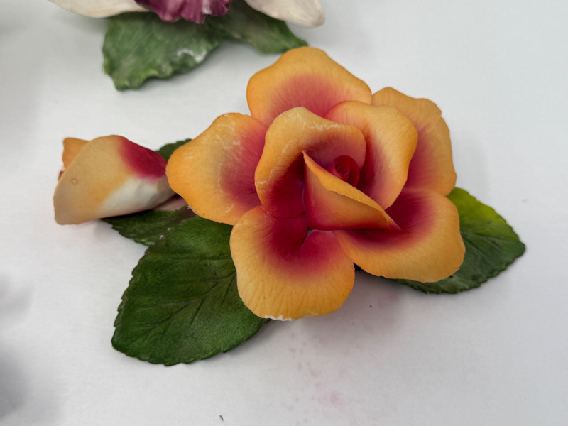 Porcelain Flowers Orange and purple roses need repair.