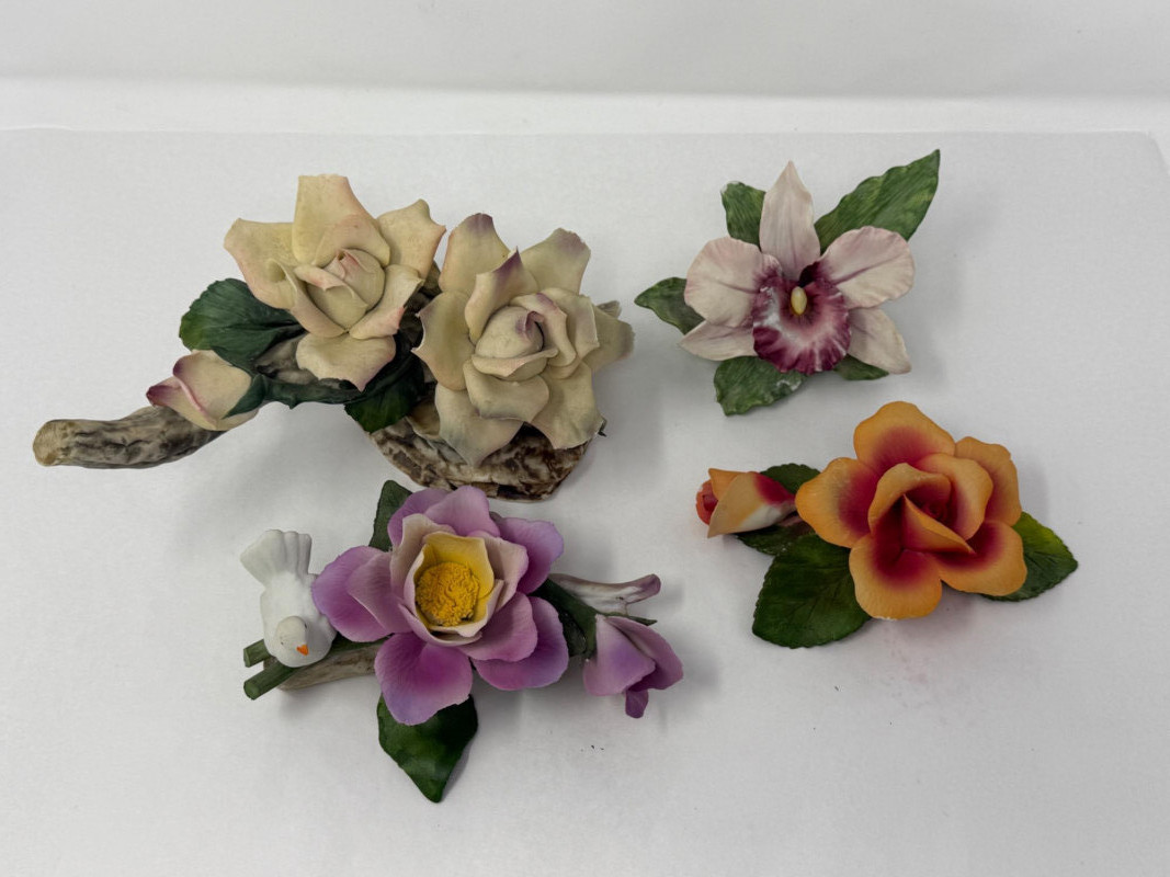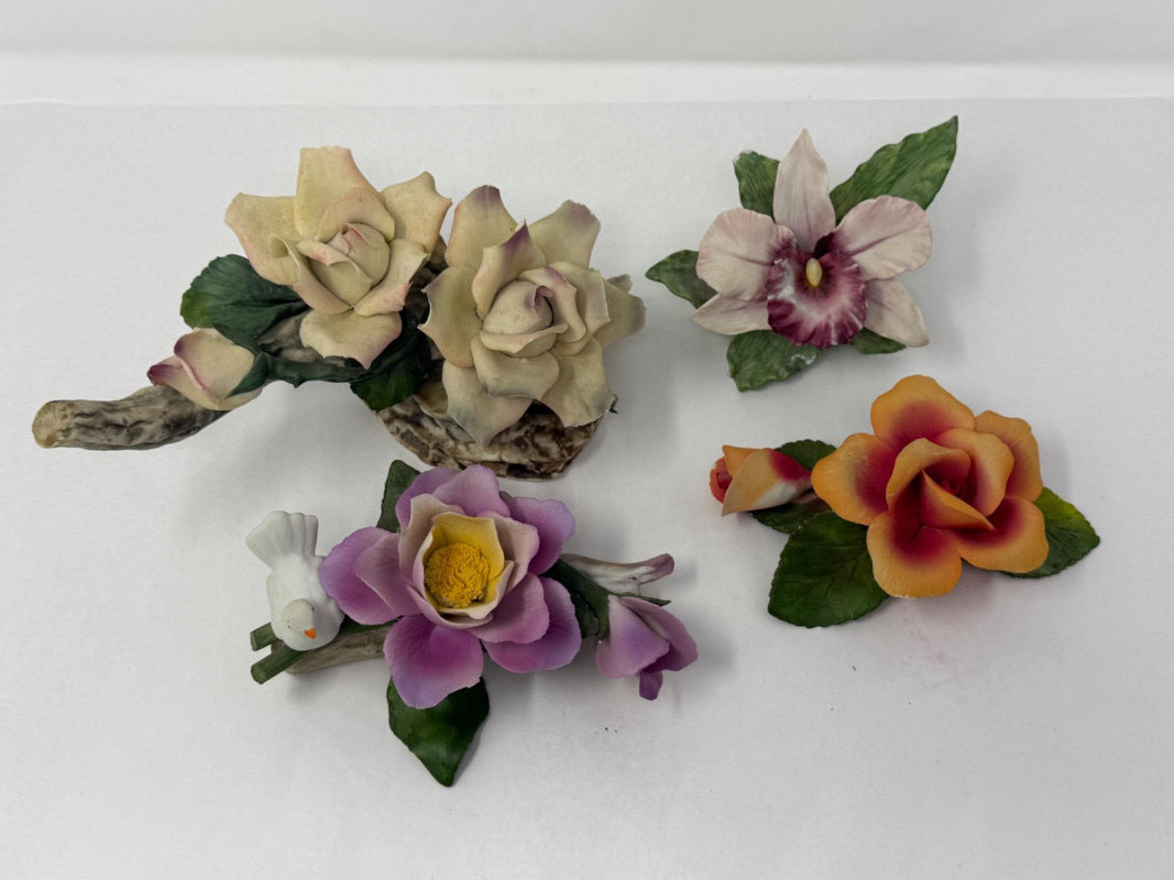 Lot # 88 - (4) Porcelain Roses and Iris Flowers