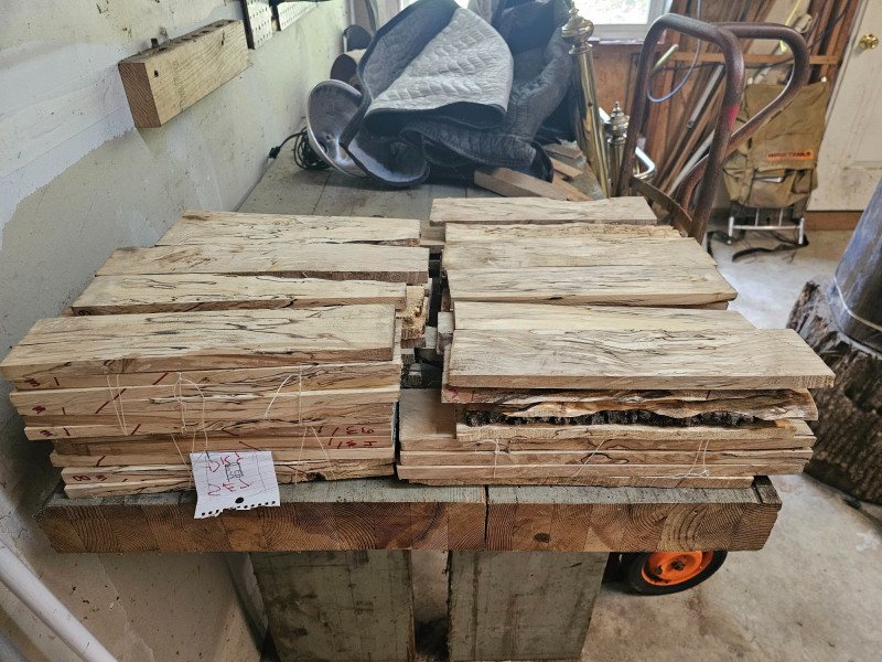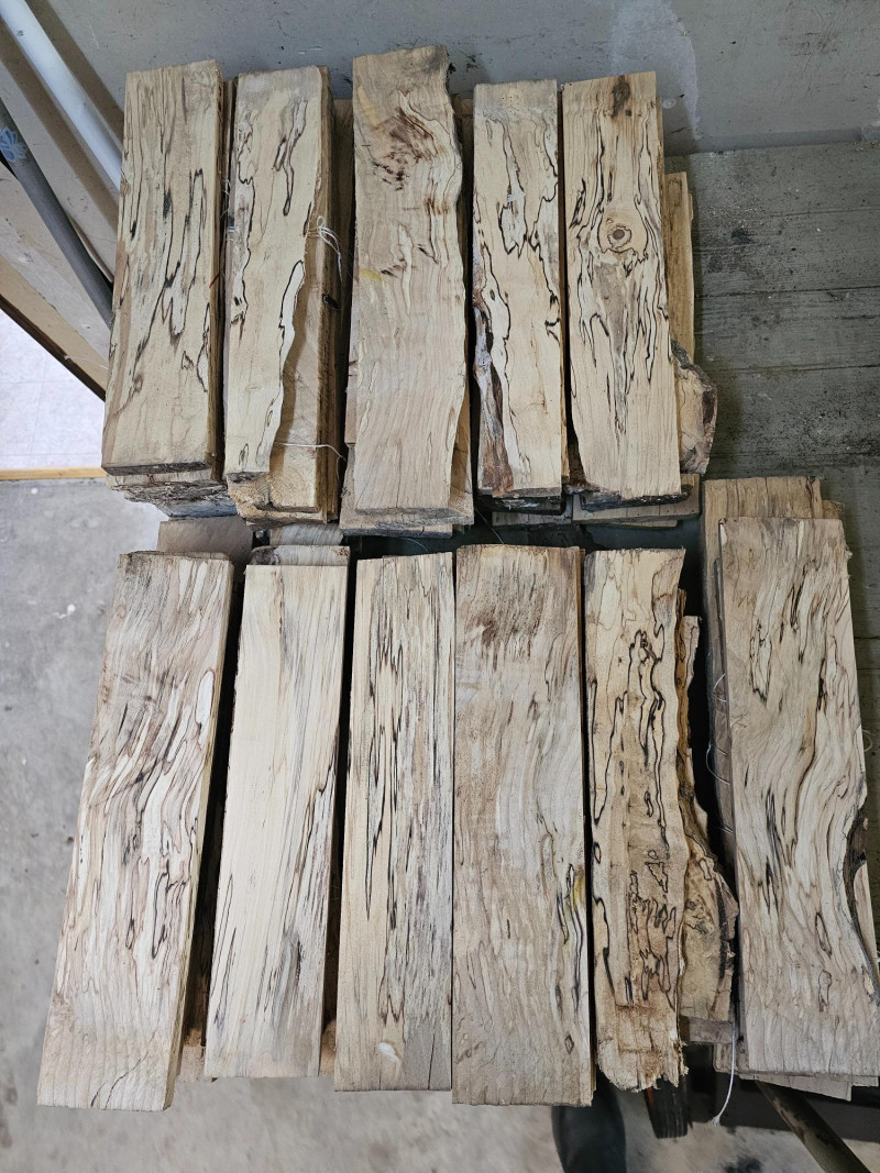 Approximately 100 Pieces Of Spalted Wood Spalted wood is highly coveted among woodworkers due to its distinguished black wavy streaks that give each hardwood piece an undeniable level of detail and visual appeal. Here's your chance to score approximately 100 pieces of spalted wood. 11 stacks of 13"L x 3"W and 5/8" thick. Some pieces are irregular These pieces would make some pretty amazing projects!