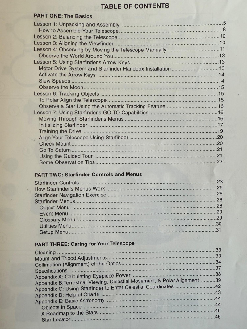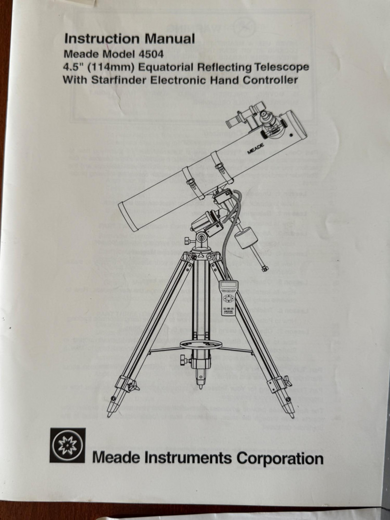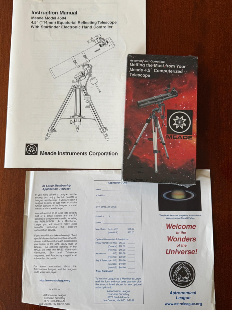 Meade Equatorial Reflecting Telescope Starfinder Electronic Hand Controller Model 4504 with Instructions and VHS guide.