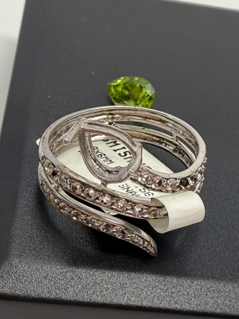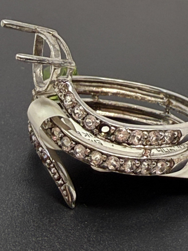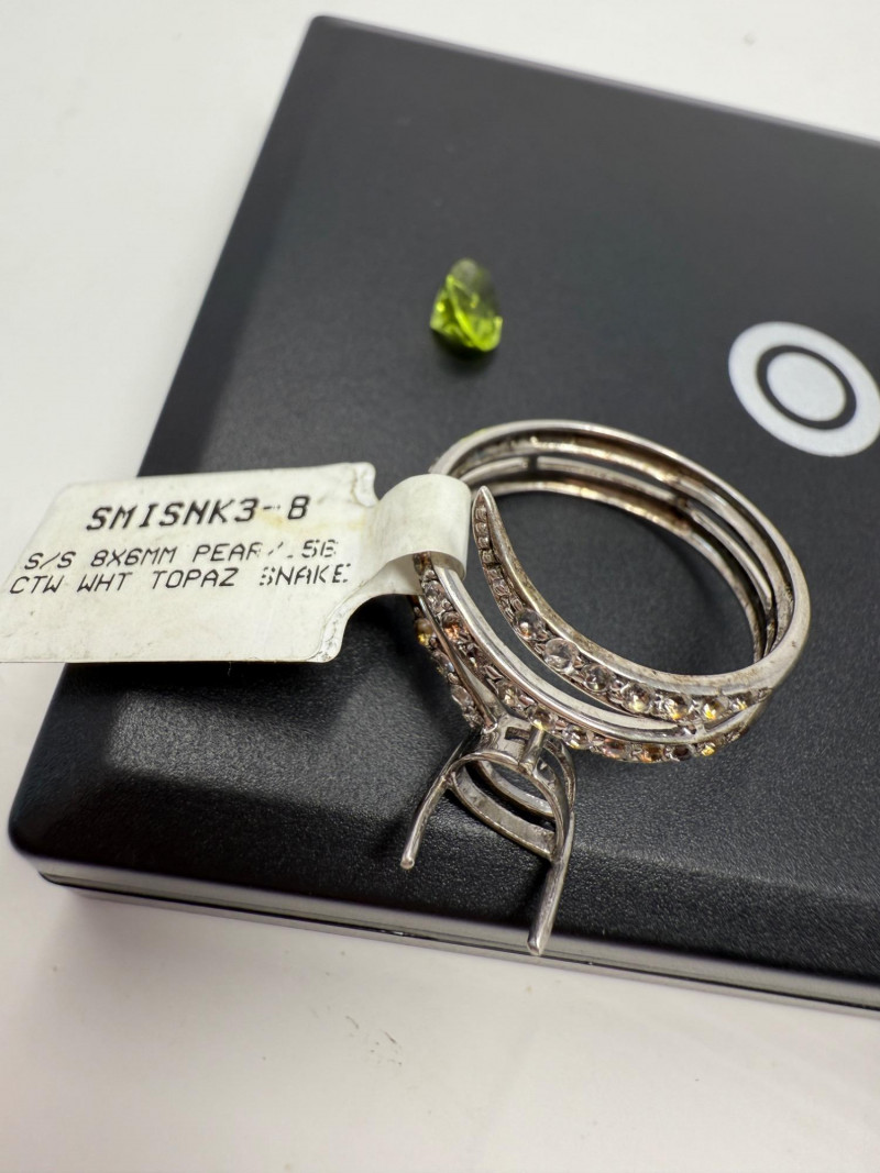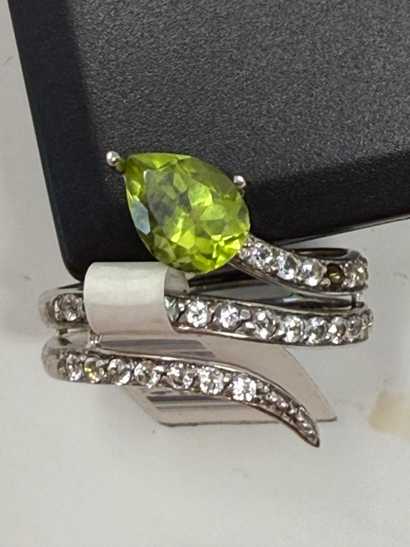 White Topaz Sterling Silver Snake Ring & Green Amethyst Size 8