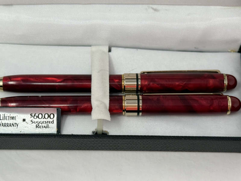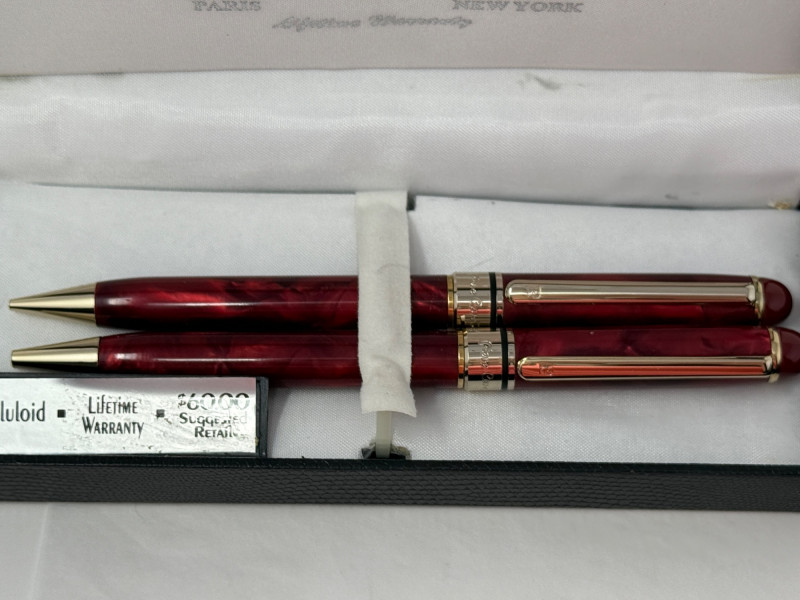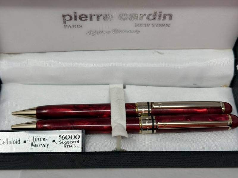 (2) Pierre Cardin Pencil & Pen Boxed Sets - New Old Stock Red Celluloid Set