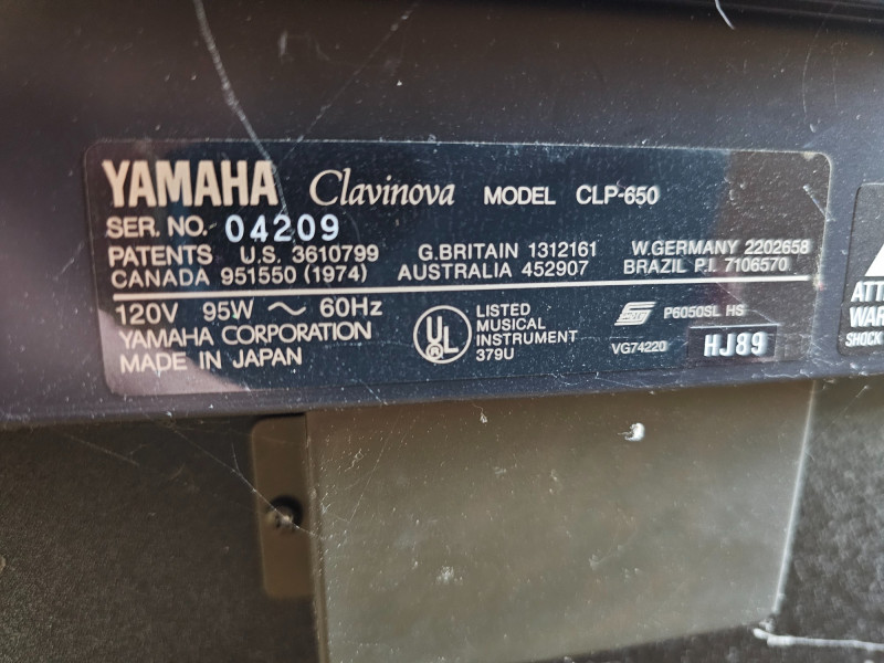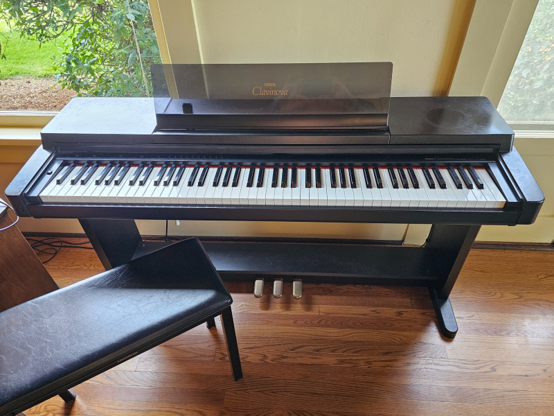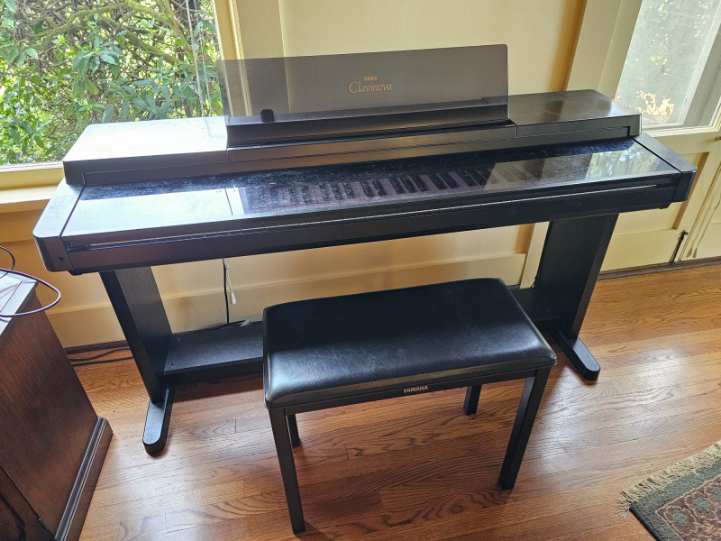 Yamaha Clarinova Electric Piano With Bench Yamaha Model #CLP-650 The Yamaha Clavinova CLP-650 series is generally well-regarded for its realistic piano sound, feel, and build quality, making it a popular choice for serious pianists and those looking for a high-quality digital piano. Includes Yamaha bench Tested - Works! 31.5"T x 55.5"W x 18"D