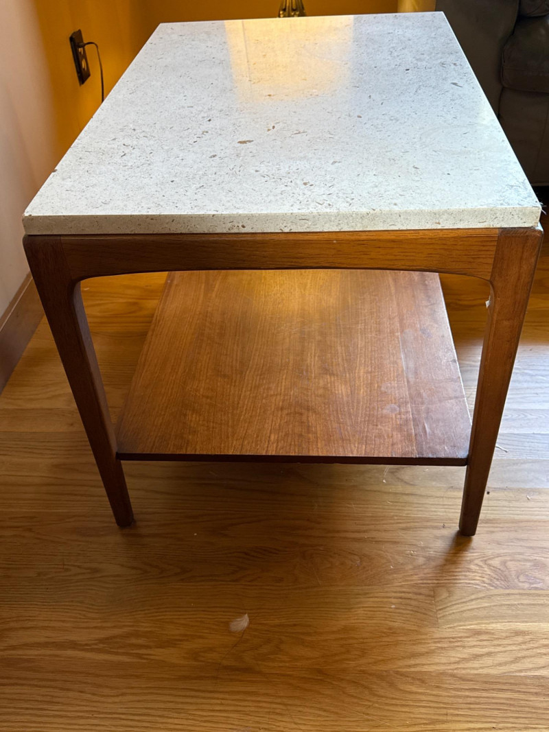 Lot # 22 - MCM Lane Walnut and Travertine End or Side Table