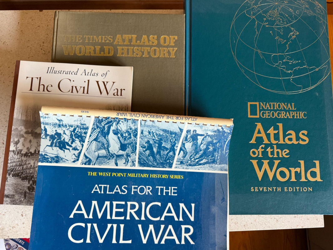(4) World History Atlases National Geographic Atlas of The World The Times Atlas of World History The Illustrated Atlas of The Civil War Atlas For The American Civil War
