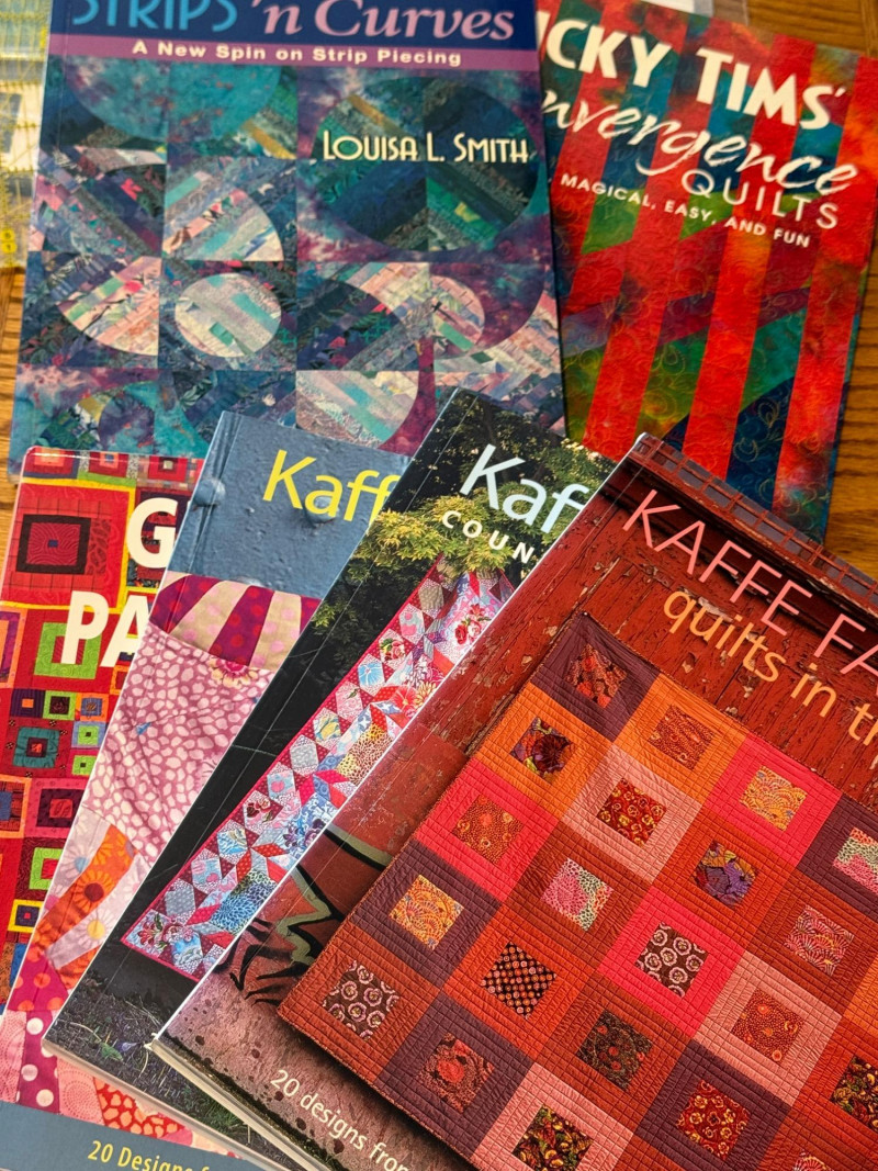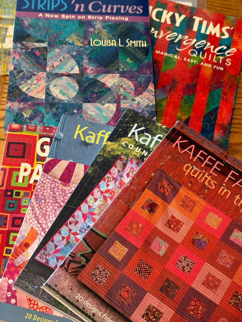 5- Kaffe Fassett’s Quilting Books with 20 designs in each book Ricky Tim’s Convergence Quilts Strips and Curves Louisa Smith