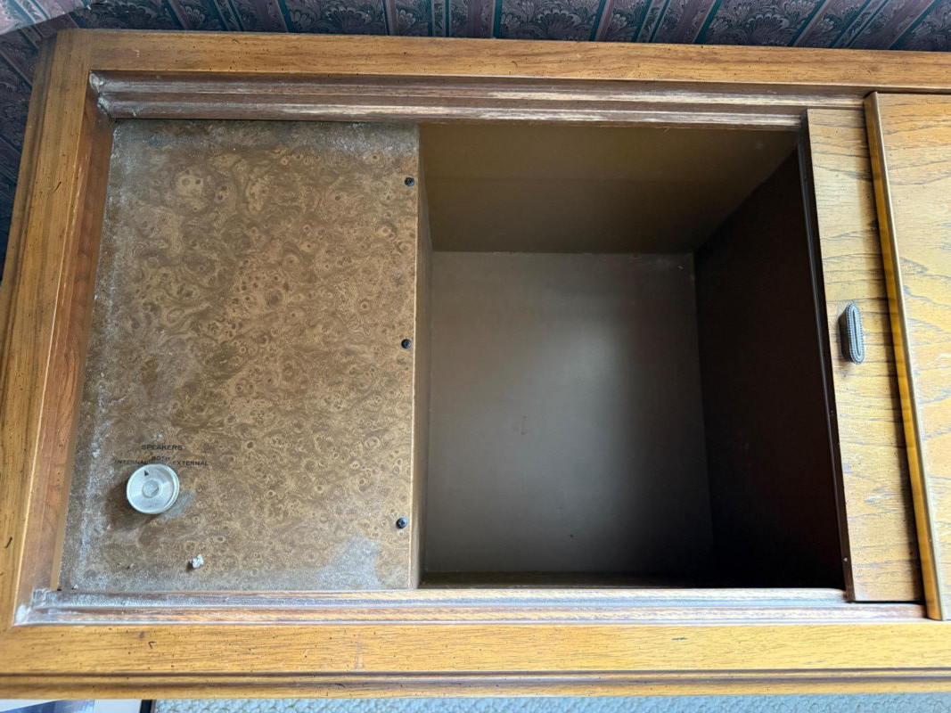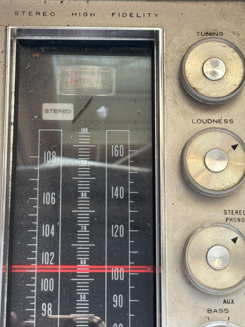 Turntable works, speakers sound good, AM/FM tunes in.