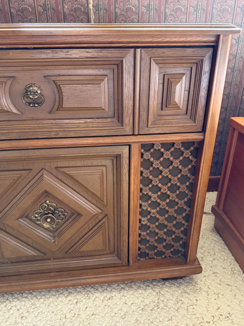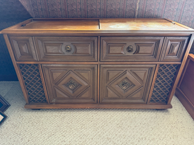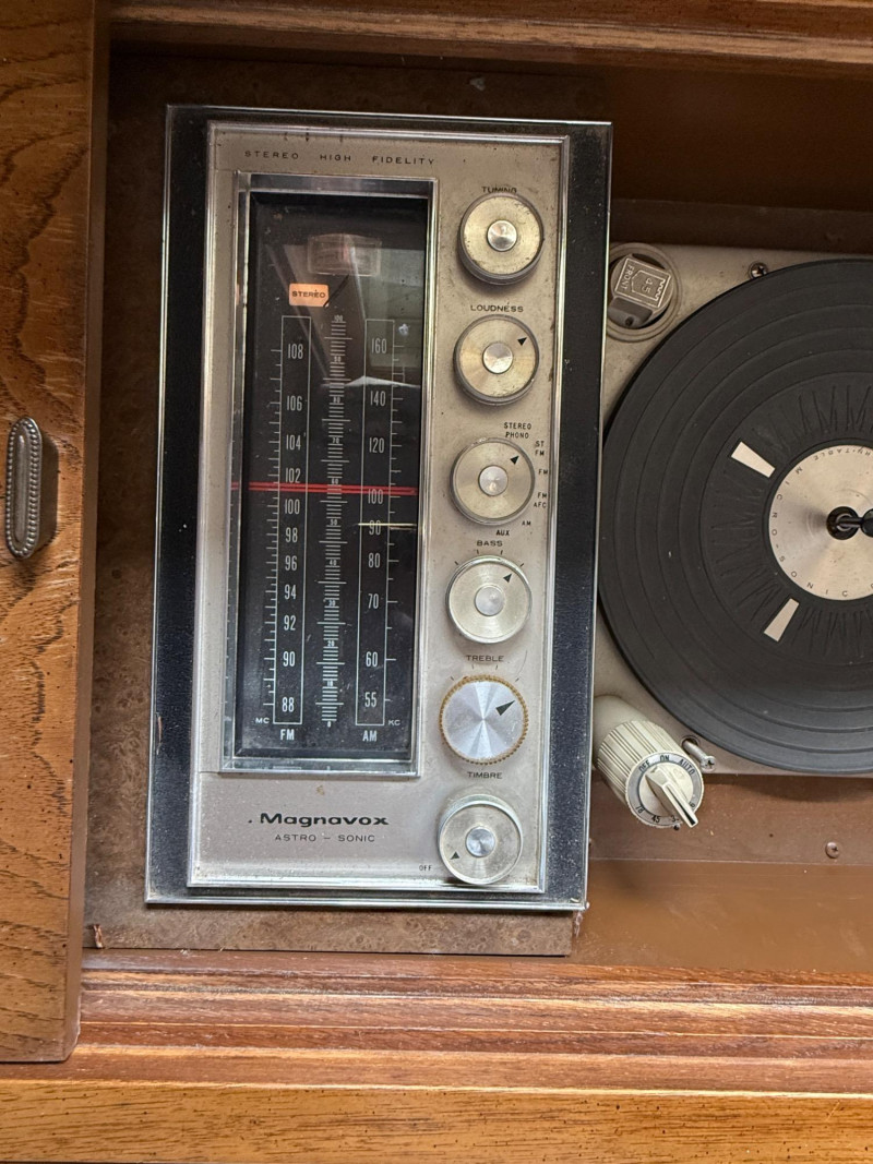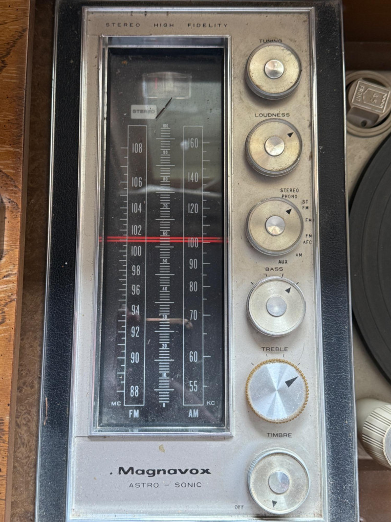 Vintage Magnavox Astro- Sonic High Fidelity Stereo Turntable Console Surface damage to sliding top.