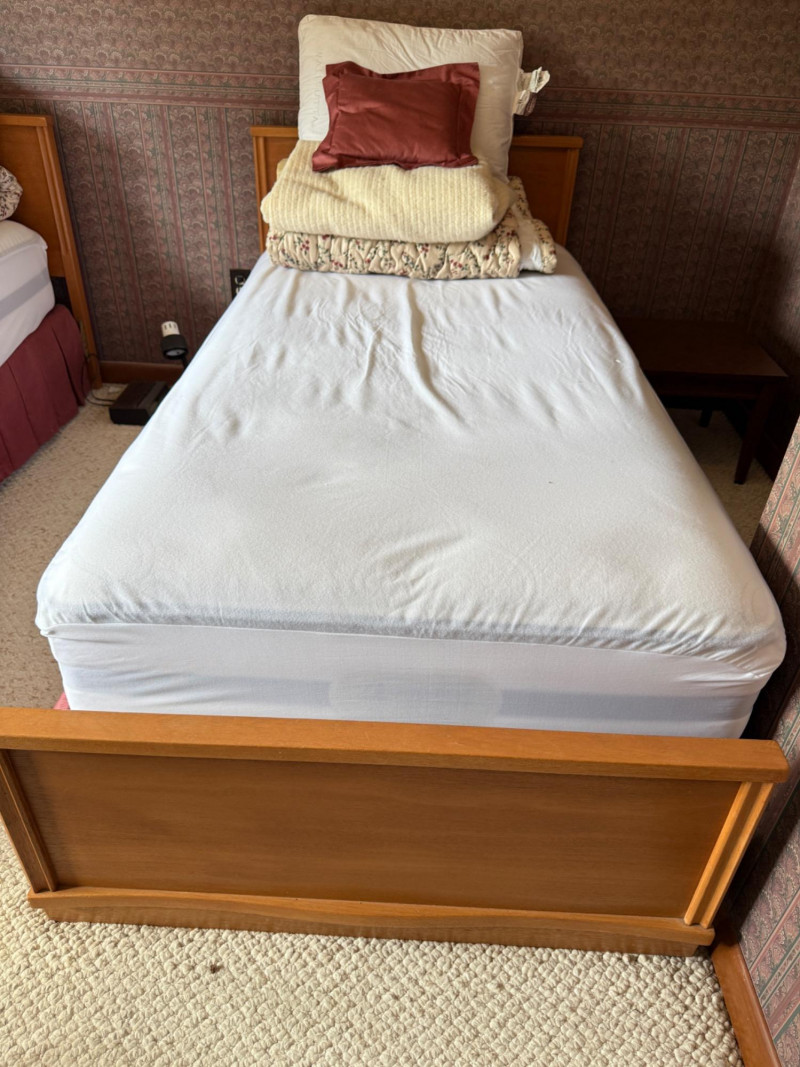 Vintage Wood Twin Bed Frame Beautyrest Luxury Firm Mattress & Bedding