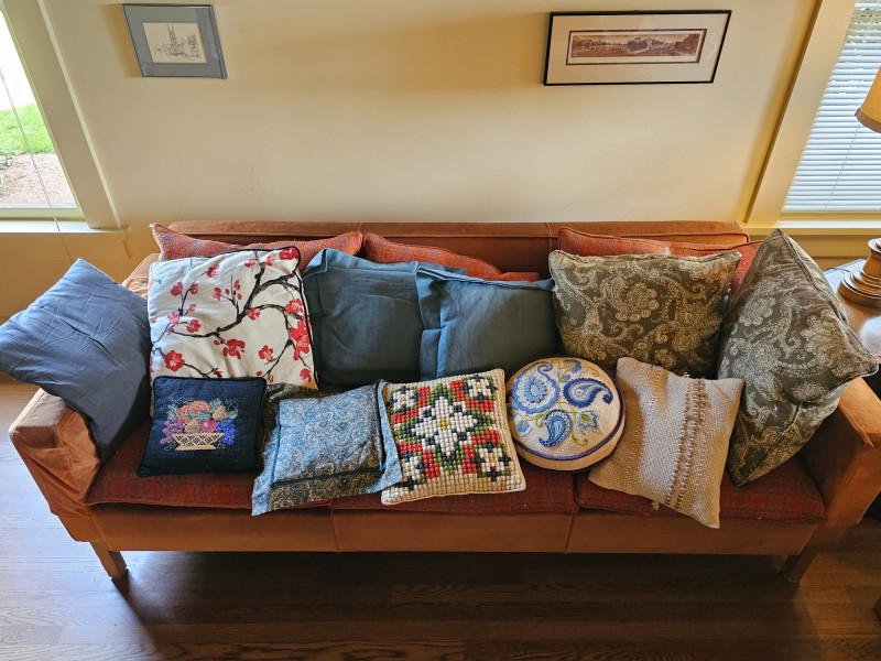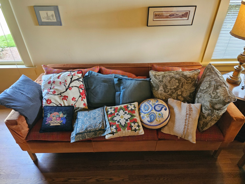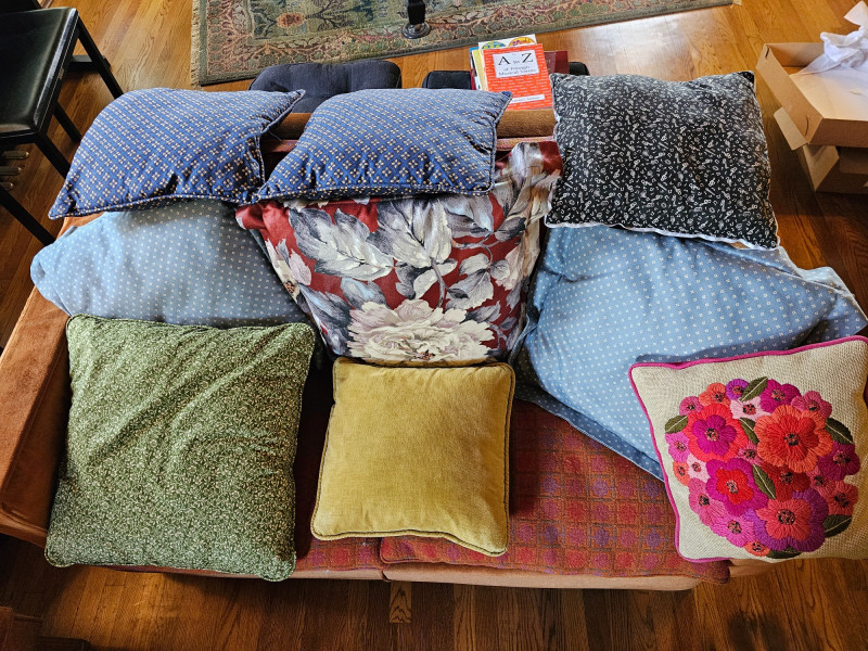 (20) Throw Pillows Throw pillows of all colors, shapes & sizes Some, if not most were handmade